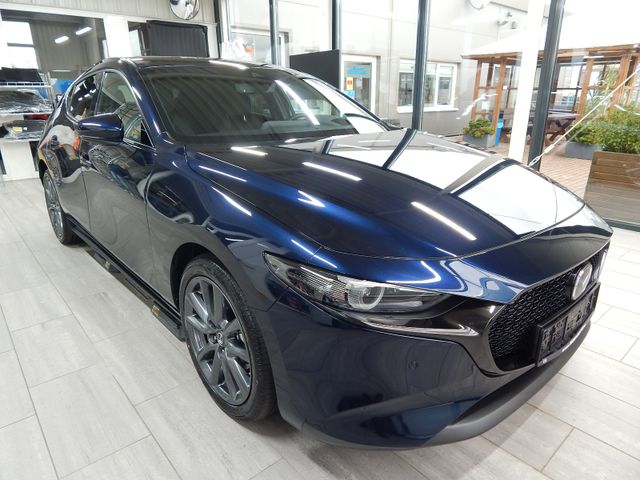 Klimatisierungsautomatik, Auto Door Lock, Elektronische Parkbremse mit Auto-Hold Funktion, Motor-Start-/Stopp-Knopf mit Chromapplikation, Rahmenloser Innenspiegel, Mittelarmlehne, vorne mit 2 USB-C-Anschlüssen, Fahrer- und Beifahrersitz höheneinstellbar (Einstellung der Neigung für den Fahrersitz), Beleuchtetes Handschuhfach, Leselampen, vorne, LED-Innenraum- und Kofferraumbeleuchtung, 3-Speichen-Sport-Lederlenkrad, Zentralverriegelung mit Funkfernbedienung, Elektrische Fensterheber, vorne und hinten, mit Komfortfunktion, Mittelarmlehne, hinten, Rücksitzlehnen im Verhältnis 60:40 geteilt klappbar, Motor Start-/Stop-Knopf, Lenkradbedientasten für Audioquelle und Lautstärke, Freisprechanlage und Geschwindigkeitsregelanlage, Make-up-Spiegel für Fahrer und Beifahrer, Lenksäule längeneinstellbar, Lenksäule höheneinstellbar, i-stop: Motor Stopp-/Start-System, Matrix LED-Lichtsystem mit 40 Leuchteinheiten, A-/B-Säulenverkleidung mit Hochglanzfinish, Heck- und Seitenscheiben hinten abgedunkelt, Notbrems-Warnblinkautomatik (ESS), Auspuffanlage, zweiflutig, Berganfahrassistent (HLA), Komfortblinkfunktion, Außenspiegel automatisch abblendend (Fahrerseite), Einparkhilfe, vorne und hinten, Frontgrill in Schwarz glänzend, Dachheckspoiler in Schwarz, LogIn: Schlüsselloses Zugangssystem, Regensensor, Frontüberwachung (FCTA) inklusive 360° Monitor, Frontairbag, Airbags: Kopf-/ Schulter-Airbag vorne und hinten; Seitenairbag vorne; Frontairbags, Knie-Airbag für Fahrer, Beifahrer-Airbag-Deaktivierung, Spurwechselassistent Plus (BSM) und Ausparkhilfe (RCTA), Alarmanlage, ISOFIX® Kindersitzhalterung für die äußeren Sitze, hinten, Geschwindigkeitsregelanlage mit Geschwindigkeitsbegrenzer, Müdigkeitserkennung (DAA), Dynamische Stabilitätskontrolle (DSC), Wegfahrsperre, elektronisch, Geschwindigkeitsbegrenzer mit Komfortschaltung (ISA), Adaptive Geschwindigkeitsregelanlage (MRCC), Aufmerksamkeitsassistent (DM), Notbremsassistent (SBS) mit Fußgänger- und Radfahrererkennung, BOSE® Sound-System mit 12 Lautsprechern, USB-Anschluss, Digitalradio-Tuner (DAB+) und Mazda Connect mit 10,25 Zoll Display, Freisprecheinrichtung mit Sprachsteuerung und Bluetooth® mit Audio-Streaming, Digitalradio-Tuner (DAB+), Mazda SD-Navigationssystem, Advanced Head-up Display, Wireless Apple Carplay und Wireless Android Auto, Qi: Induktives Laden (für kompatible Smartphones)