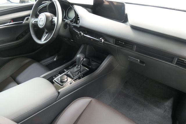 Kli­ma­ti­sie­rungs­au­to­ma­tik, Auto Door Lock, Elek­tro­ni­sche Park­brem­se mit Auto-Hold Funk­ti­on, Mo­tor-Start-/Stopp-Knopf mit Chrom­ap­pli­ka­ti­on, Rah­men­lo­ser In­nen­spie­gel, Mit­tel­arm­leh­ne, vor­ne mit 2 USB-C-An­schlüs­sen, Fah­rer- und Bei­fah­rer­sitz hö­hen­ein­stell­bar (Ein­stel­lung der Nei­gung für den Fah­rer­sitz), Be­leuch­te­tes Hand­schuh­fach, Le­se­lam­pen, vor­ne, LED-In­nen­raum- und Kof­fer­raum­be­leuch­tung, 3-Spei­chen-Sport-Le­der­lenk­rad, Zen­tral­ver­rie­ge­lung mit Funk­fern­be­die­nung, Elek­tri­sche Fens­ter­he­ber, vor­ne und hin­ten, mit Kom­fort­funk­ti­on, Mit­tel­arm­leh­ne, hin­ten, Rück­sitz­leh­nen im Ver­hält­nis 60:40 ge­teilt klapp­bar, Mo­tor Start-/Stop-Knopf, Lenk­rad­be­dien­tas­ten für Au­dio­qu­el­le und Laut­stär­ke, Frei­sprech­an­la­ge und Ge­schwin­dig­keits­re­gel­an­la­ge, Make-up-Spie­gel für Fah­rer und Bei­fah­rer, Lenk­säu­le län­gen­ein­stell­bar, Lenk­säu­le hö­hen­ein­stell­bar, i-stop: Mo­tor Stopp-/Start-Sys­tem, Ma­trix LED-Licht­sys­tem mit 40 Leucht­ein­hei­ten, A-/B-Säu­len­ver­klei­dung mit Hoch­glanz­fi­nish, Heck- und Sei­ten­schei­ben hin­ten ab­ge­dun­kelt, Not­brems-Warn­b­link­au­to­ma­tik (ESS), Aus­puff­an­la­ge, zweiflu­tig, Berg­an­fahr­as­sis­tent (HLA), Kom­fort­b­link­funk­ti­on, Au­ßen­spie­gel au­to­ma­tisch ab­blen­dend (Fah­rer­sei­te), Ein­park­hil­fe, vor­ne und hin­ten, Front­grill in Schwarz glän­zend, Dach­heck­spoi­ler in Schwarz, Log­In: Schlüs­sel­lo­ses Zu­gangs­sys­tem, Re­gen­sen­sor, Front­über­wa­chung (FCTA) in­k­lu­si­ve 360° Mo­ni­tor, Fron­t­air­bag, Air­bags: Kopf-/ Schul­ter-Air­bag vor­ne und hin­ten; Sei­ten­air­bag vor­ne; Fron­t­air­bags, Knie-Air­bag für Fah­rer, Bei­fah­rer-Air­bag-De­ak­ti­vie­rung, Spur­wech­sel­as­sis­tent Plus (BSM) und Auspark­hil­fe (RCTA), Alarm­an­la­ge, ISO­FIX® Kin­der­sitz­hal­te­rung für die äu­ße­ren Sit­ze, hin­ten, Ge­schwin­dig­keits­re­gel­an­la­ge mit Ge­schwin­dig­keits­be­gren­zer, Mü­dig­keits­er­ken­nung (DAA), Dy­na­mi­sche Sta­bi­li­täts­kon­trol­le (DSC), Weg­fahr­sper­re, elek­tro­nisch, Ge­schwin­dig­keits­be­gren­zer mit Kom­fort­schal­tung (ISA), Ad­ap­ti­ve Ge­schwin­dig­keits­re­gel­an­la­ge (MRCC), Auf­merk­sam­keits­as­sis­tent (DM), Not­brems­as­sis­tent (SBS) mit Fuß­gän­ger- und Rad­fah­rer­erken­nung, BOSE® Sound-Sys­tem mit 12 Laut­spre­chern, USB-An­schluss, Di­gi­tal­ra­dio-Tu­ner (DAB+) und Mazda Con­nect mit 10,25 Zoll Dis­play, Frei­sprech­ein­rich­tung mit Sprach­steue­rung und Blue­tooth® mit Au­dio-Strea­ming, Di­gi­tal­ra­dio-Tu­ner (DAB+), Mazda SD-Na­vi­ga­ti­ons­sys­tem, Ad­van­ced Head-up Dis­play, Wireless Ap­ple Car­play und Wireless An­dro­id Auto, Qi: In­duk­ti­ves La­den (für kom­pa­ti­ble Smart­pho­nes)