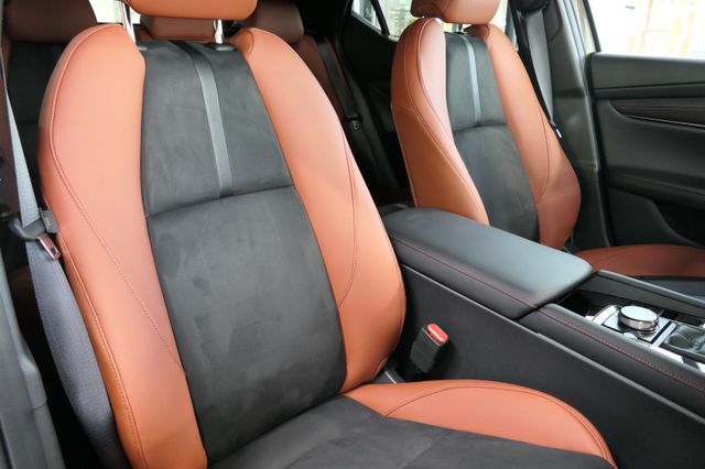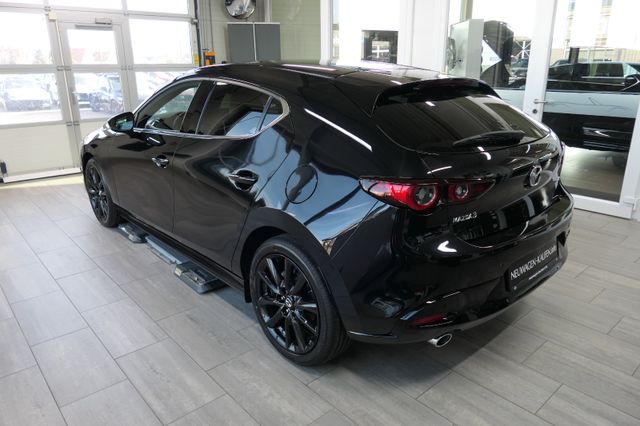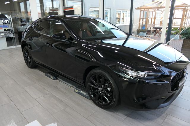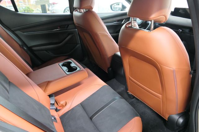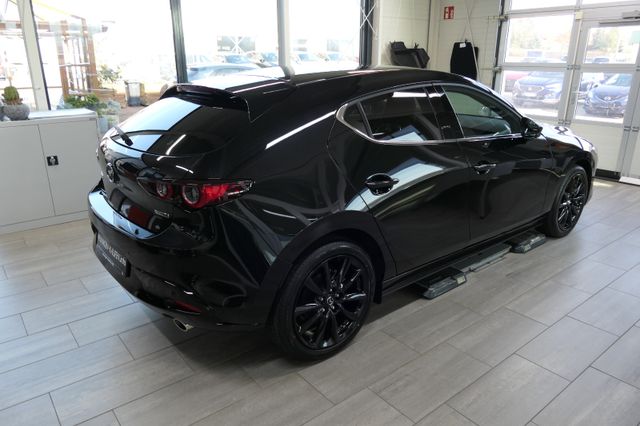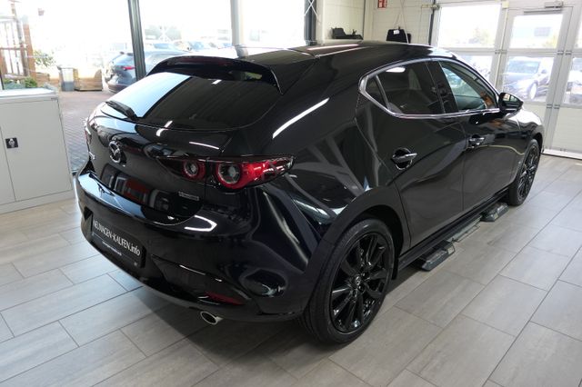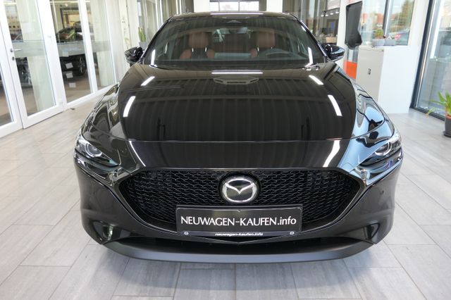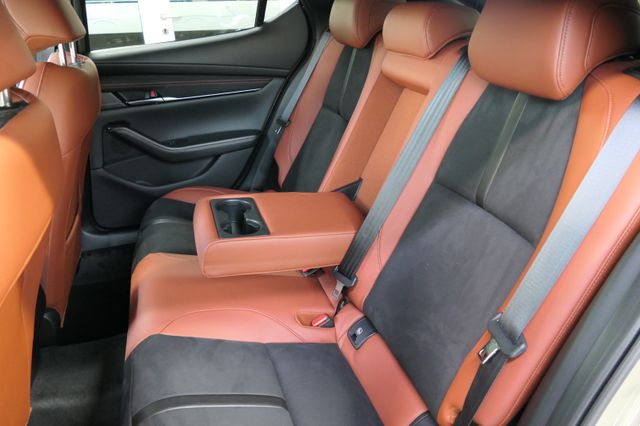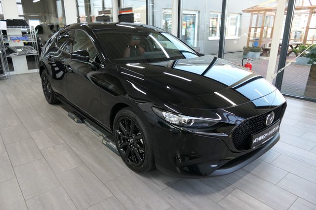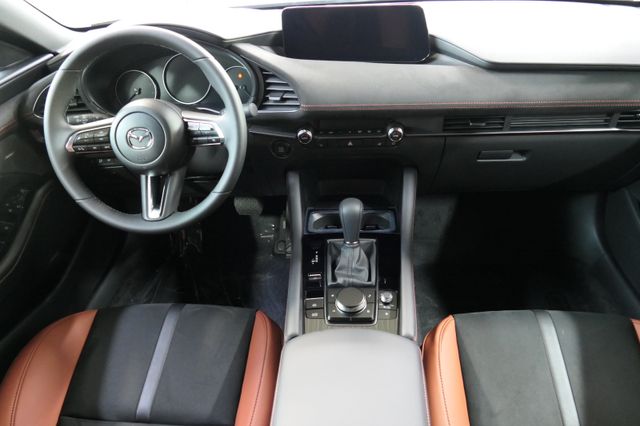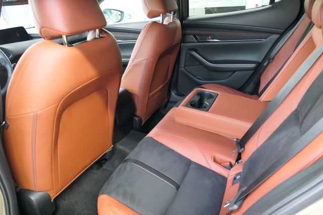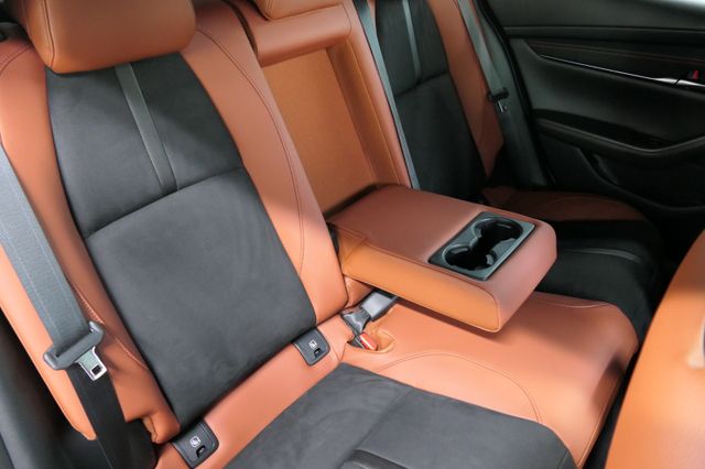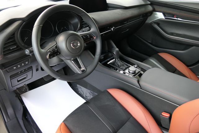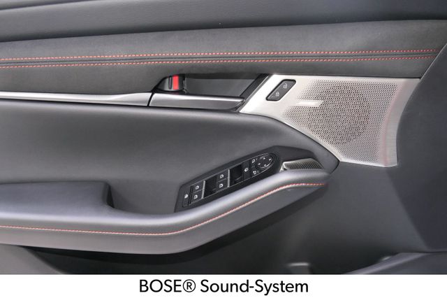 18-Zoll-Leichtmetallfelgen in Schwarz, A-/B-Säulenverkleidung mit Hochglanzfinish, Klimatisierungsautomatik, BOSE® Sound-System mit 12 Lautsprechern, USB-Anschluss, Digitalradio-Tuner (DAB+) und Mazda Connect mit 10,25 Zoll Display, Frontairbag, Heck- und Seitenscheiben hinten abgedunkelt, Airbags: Kopf-/ Schulter-Airbag vorne und hinten; Seitenairbag vorne; Frontairbags, Knie-Airbag für Fahrer, Beifahrer-Airbag-Deaktivierung, Freisprecheinrichtung mit Sprachsteuerung und Bluetooth® mit Audio-Streaming, Notbrems-Warnblinkautomatik (ESS), Digitalradio-Tuner (DAB+), Auto Door Lock, Rückfahrkamera, Auspuffanlage, zweiflutig, Mazda SD-Navigationssystem, Innenrückspiegel automatisch abblendend, Sport- oder Normal-Modus (nur i.V.m. Skyactiv-Drive Automatikgetriebe), Spurwechselassistent Plus (BSM) und Ausparkhilfe (RCTA), Advanced Head-up Display, Wireless Apple Carplay und Wireless Android Auto, Elektronische Parkbremse mit Auto-Hold Funktion, Qi: Induktives Laden (für kompatible Smartphones), Alarmanlage, ISOFIX® Kindersitzhalterung für die äußeren Sitze, hinten, Mittelarmlehne, vorne mit 2 USB-C-Anschlüssen, Geschwindigkeitsregelanlage mit Geschwindigkeitsbegrenzer, Fernlichtassistent (HBC), Fahrer- und Beifahrersitz höheneinstellbar (Einstellung der Neigung für den Fahrersitz), Müdigkeitserkennung (DAA), Berganfahrassistent (HLA), Beleuchtetes Handschuhfach, Dekorelemente in Gunmetal-Schwarz, Dynamische Stabilitätskontrolle (DSC), Leselampen, vorne, Voll-LED-Scheinwerfer mit automatischer Leuchtweitenregulierung, LED-Rückleuchten und Blinker, Halogen-Tagfahrlicht, LED-Innenraum- und Kofferraumbeleuchtung, Wegfahrsperre, elektronisch, Komfortblinkfunktion, Geschwindigkeitsbegrenzer mit Komfortschaltung (ISA), Memory-Funktion für Fahrersitz, Head-up Display und Außenspiegel, 3-Speichen-Sport-Lederlenkrad, Außenspiegel automatisch abblendend (Fahrerseite), Einparkhilfe, vorne und hinten, Adaptive Geschwindigkeitsregelanlage mit Stauassistenzfunktion (i.V.m. Skyactiv-Drive Automatik) (MRCC), Frontgrill in Schwarz glänzend, Zentralverriegelung mit Funkfernbedienung, Notbremsassistent (SBS) mit Fußgänger- und Radfahrererkennung, Dachheckspoiler in Schwarz, LogIn: Schlüsselloses Zugangssystem, Elektrische Fensterheber, vorne und hinten, mit Komfortfunktion, Mittelarmlehne, hinten, Gurtstraffer mit Gurtkraftbegrenzer, vorne und hinten außen, Rücksitzlehnen im Verhältnis 60:40 geteilt klappbar, Regensensor, Warnleuchte und -ton für nicht angelegte Sicherheitsgurte, Reifendruckkontrollsystem, direkt (TPMS), Mobilitäts-Kit mit Kompressor und Reifendichtmittel, Motor Start-/Stop-Knopf, Lenkradbedientasten für Audioquelle und Lautstärke, Freisprechanlage und Geschwindigkeitsregelanlage, Make-up-Spiegel für Fahrer und Beifahrer, Lenksäule längeneinstellbar, Lenksäule höheneinstellbar