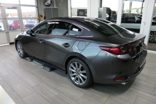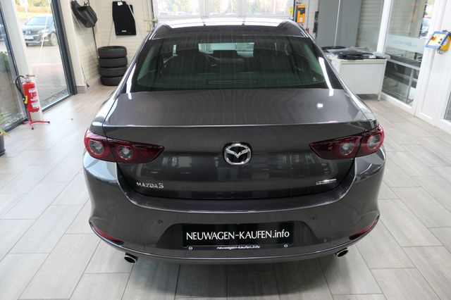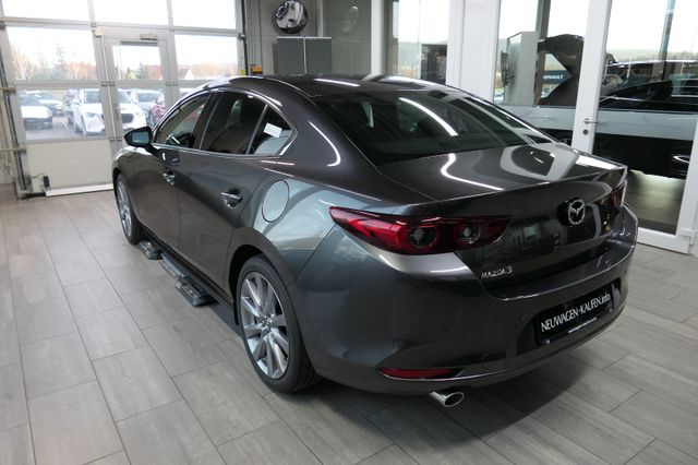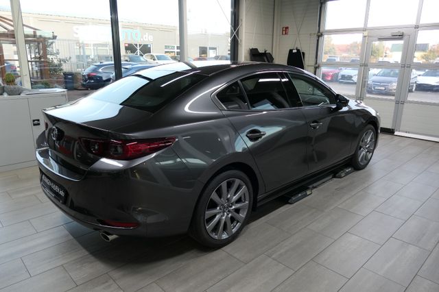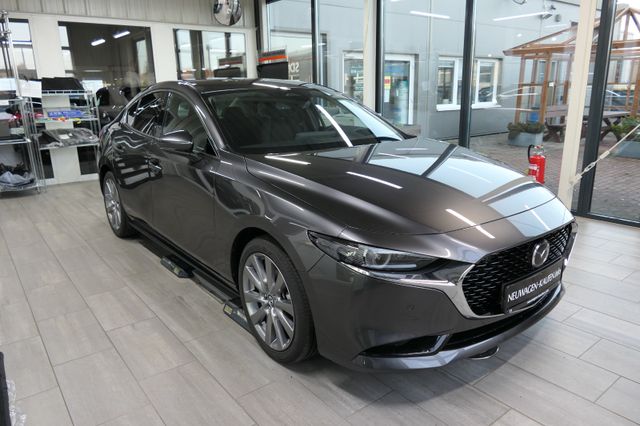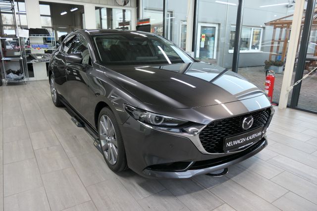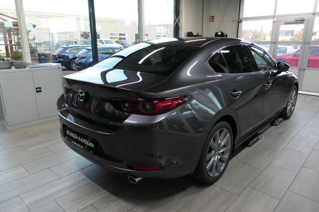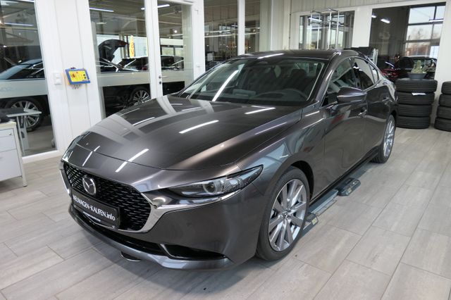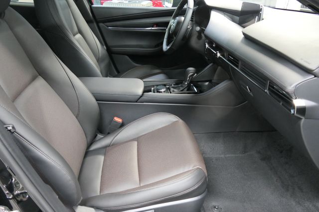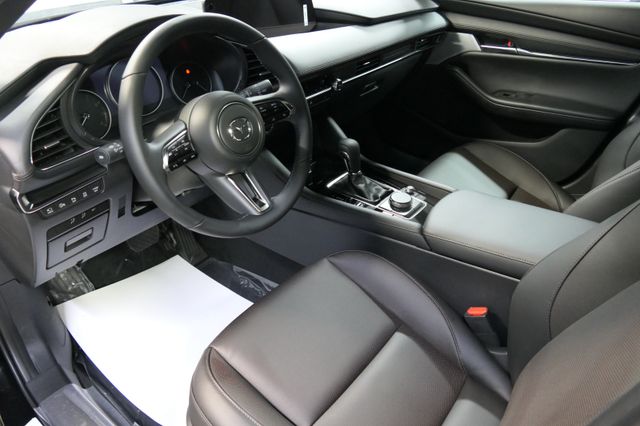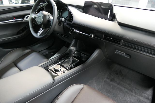 Klimatisierungsautomatik, Auto Door Lock, Elektronische Parkbremse mit Auto-Hold Funktion, Motor-Start-/Stopp-Knopf mit Chromapplikation, Rahmenloser Innenspiegel, Mittelarmlehne, vorne mit 2 USB-C-Anschlüssen, Fahrer- und Beifahrersitz höheneinstellbar (Einstellung der Neigung für den Fahrersitz), Beleuchtetes Handschuhfach, Leselampen, vorne, LED-Innenraum- und Kofferraumbeleuchtung, 3-Speichen-Sport-Lederlenkrad, Zentralverriegelung mit Funkfernbedienung, Elektrische Fensterheber, vorne und hinten, mit Komfortfunktion, Mittelarmlehne, hinten, Rücksitzlehnen im Verhältnis 60:40 geteilt klappbar, Motor Start-/Stop-Knopf, Lenkradbedientasten für Audioquelle und Lautstärke, Freisprechanlage und Geschwindigkeitsregelanlage, Make-up-Spiegel für Fahrer und Beifahrer, Lenksäule längeneinstellbar, Lenksäule höheneinstellbar, i-stop: Motor Stopp-/Start-System, Matrix LED-Lichtsystem mit 40 Leuchteinheiten, A-/B-Säulenverkleidung mit Hochglanzfinish, Heck- und Seitenscheiben hinten abgedunkelt, Notbrems-Warnblinkautomatik (ESS), Auspuffanlage, zweiflutig, Berganfahrassistent (HLA), Komfortblinkfunktion, Außenspiegel automatisch abblendend (Fahrerseite), Einparkhilfe, vorne und hinten, Frontgrill in Schwarz glänzend, Dachheckspoiler in Schwarz, LogIn: Schlüsselloses Zugangssystem, Regensensor, Frontüberwachung (FCTA) inklusive 360° Monitor, Frontairbag, Airbags: Kopf-/ Schulter-Airbag vorne und hinten; Seitenairbag vorne; Frontairbags, Knie-Airbag für Fahrer, Beifahrer-Airbag-Deaktivierung, Spurwechselassistent Plus (BSM) und Ausparkhilfe (RCTA), Alarmanlage, ISOFIX® Kindersitzhalterung für die äußeren Sitze, hinten, Geschwindigkeitsregelanlage mit Geschwindigkeitsbegrenzer, Müdigkeitserkennung (DAA), Dynamische Stabilitätskontrolle (DSC), Wegfahrsperre, elektronisch, Geschwindigkeitsbegrenzer mit Komfortschaltung (ISA), Adaptive Geschwindigkeitsregelanlage (MRCC), Aufmerksamkeitsassistent (DM), Notbremsassistent (SBS) mit Fußgänger- und Radfahrererkennung, BOSE® Sound-System mit 12 Lautsprechern, USB-Anschluss, Digitalradio-Tuner (DAB+) und Mazda Connect mit 10,25 Zoll Display, Freisprecheinrichtung mit Sprachsteuerung und Bluetooth® mit Audio-Streaming, Digitalradio-Tuner (DAB+), Mazda SD-Navigationssystem, Advanced Head-up Display, Wireless Apple Carplay und Wireless Android Auto, Qi: Induktives Laden (für kompatible Smartphones)