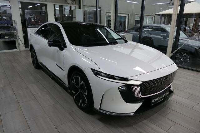 LED-Frontscheinwerfer & -Tagfahrlicht, LED-Lichtsignatur, vorne und hinten, LED-Rückleuchte mit durchgehendem Leuchtband, Panorama-Glasdach, dunkel getönt und wärmereflektierend, Beleuchteter Signature-Wing, Elektrische Heckklappe, Elektrischer Heckspoiler, Rahmenlose Türen mit flächenbündigen Türgriffen, Beheizte Außenspiegel, elektrisch einstell-/anklappbar mit Memory-Funktion und integrierten LED-Seitenblinkern, 19-Zoll-Aero-Leichtmetallfelgen, Frunk: Vorderer Gepäckraum, Heck- und Seitenscheiben hinten abgedunkelt, Licht- und Regensensor