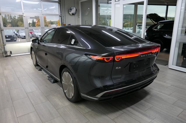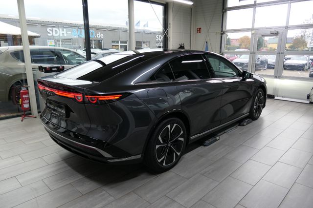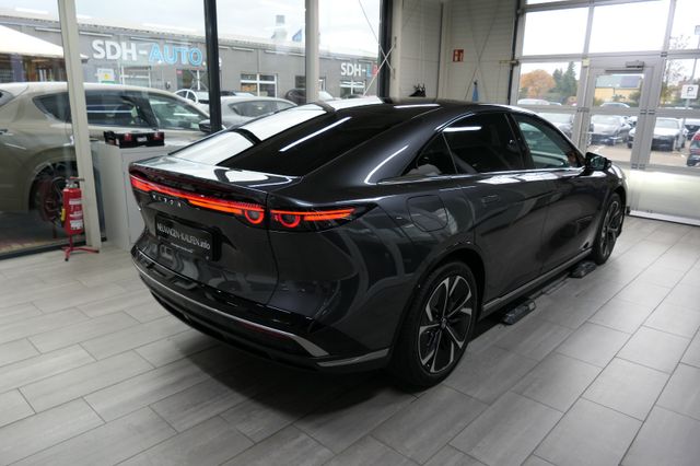 LED-Frontscheinwerfer & -Tagfahrlicht, LED-Lichtsignatur, vorne und hinten, LED-Rückleuchte mit durchgehendem Leuchtband, Panorama-Glasdach, dunkel getönt und wärmereflektierend, Beleuchteter Signature-Wing, Elektrische Heckklappe, Elektrischer Heckspoiler, Rahmenlose Türen mit flächenbündigen Türgriffen, Beheizte Außenspiegel, elektrisch einstell-/anklappbar mit Memory-Funktion und integrierten LED-Seitenblinkern, 19-Zoll-Aero-Leichtmetallfelgen, Frunk: Vorderer Gepäckraum, Heck- und Seitenscheiben hinten abgedunkelt, Licht- und Regensensor