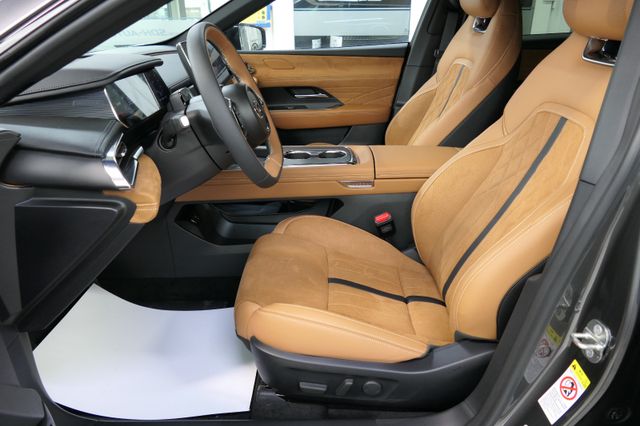 19-Zoll-Aero-Leichtmetallfelgen mit 245/45 R19 Bereifung, Sitzbezüge hellbraun, Teil-Nappaleder und Veloursledernachbildung mit Steppung, mit Sitzheizung und Sitzklimatisierung, vorne, 14,6-Zoll-Multimedia-Touchdisplay, 360° Monitor, Adaptive Geschwindigkeitsregelanlage mit Stauassistenzfunktion (MRCC), Ambientebeleuchtung, Bluetooth Schlüssel über das Smartphone, per App teilbar, Elektrische Heckklappe, Head-up Display, Heck- und Seitenscheiben hinten abgedunkelt, Panorama-Glasdach, dunkel getönt, wärmereflektierend, mit elektrischem Sonnenrollo, Sony® Sound-System mit 14 Lautsprechern inkl. Lautsprechern in der Fahrerkopfstütze, Wärmepumpe