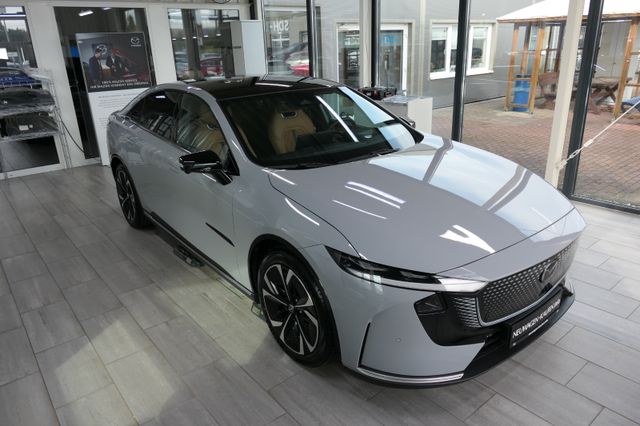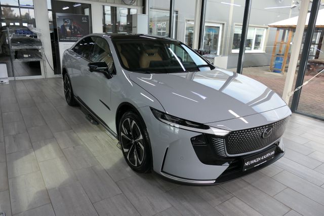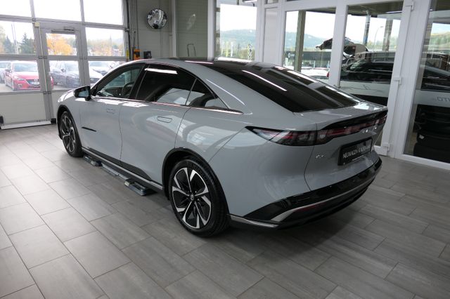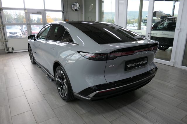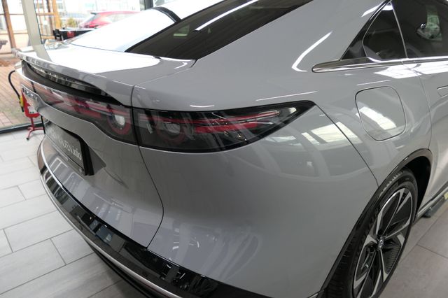 LED-Frontscheinwerfer & -Tagfahrlicht, LED-Lichtsignatur, vorne und hinten, LED-Rückleuchte mit durchgehendem Leuchtband, Panorama-Glasdach, dunkel getönt und wärmereflektierend, Beleuchteter Signature-Wing, Elektrische Heckklappe, Elektrischer Heckspoiler, Rahmenlose Türen mit flächenbündigen Türgriffen, Beheizte Außenspiegel, elektrisch einstell-/anklappbar mit Memory-Funktion und integrierten LED-Seitenblinkern, 19-Zoll-Aero-Leichtmetallfelgen, Frunk: Vorderer Gepäckraum, Heck- und Seitenscheiben hinten abgedunkelt, Licht- und Regensensor