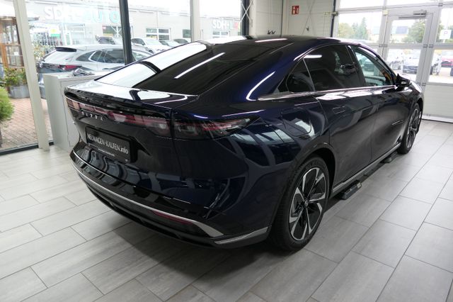 LED-Frontscheinwerfer & -Tagfahrlicht, LED-Lichtsignatur, vorne und hinten, LED-Rückleuchte mit durchgehendem Leuchtband, Panorama-Glasdach, dunkel getönt und wärmereflektierend, Beleuchteter Signature-Wing, Elektrische Heckklappe, Elektrischer Heckspoiler, Rahmenlose Türen mit flächenbündigen Türgriffen, Beheizte Außenspiegel, elektrisch einstell-/anklappbar mit Memory-Funktion und integrierten LED-Seitenblinkern, 19-Zoll-Aero-Leichtmetallfelgen, Frunk: Vorderer Gepäckraum, Heck- und Seitenscheiben hinten abgedunkelt, Licht- und Regensensor