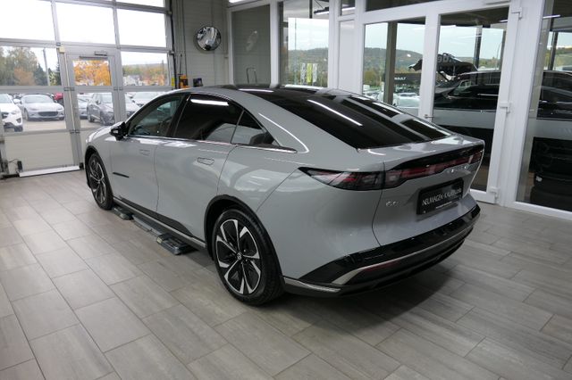 LED-Frontscheinwerfer & -Tagfahrlicht, LED-Lichtsignatur, vorne und hinten, LED-Rückleuchte mit durchgehendem Leuchtband, Panorama-Glasdach, dunkel getönt und wärmereflektierend, Beleuchteter Signature-Wing, Elektrische Heckklappe, Elektrischer Heckspoiler, Rahmenlose Türen mit flächenbündigen Türgriffen, Beheizte Außenspiegel, elektrisch einstell-/anklappbar mit Memory-Funktion und integrierten LED-Seitenblinkern, 19-Zoll-Aero-Leichtmetallfelgen, Frunk: Vorderer Gepäckraum, Heck- und Seitenscheiben hinten abgedunkelt, Licht- und Regensensor