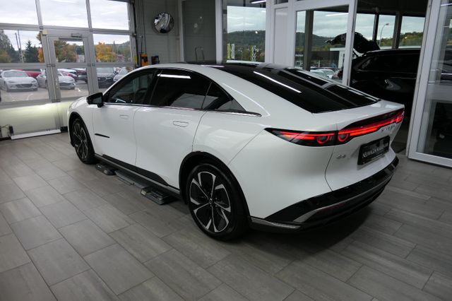 LED-Frontscheinwerfer & -Tagfahrlicht, LED-Lichtsignatur, vorne und hinten, LED-Rückleuchte mit durchgehendem Leuchtband, Panorama-Glasdach, dunkel getönt und wärmereflektierend, Beleuchteter Signature-Wing, Elektrische Heckklappe, Elektrischer Heckspoiler, Rahmenlose Türen mit flächenbündigen Türgriffen, Beheizte Außenspiegel, elektrisch einstell-/anklappbar mit Memory-Funktion und integrierten LED-Seitenblinkern, 19-Zoll-Aero-Leichtmetallfelgen, Frunk: Vorderer Gepäckraum, Heck- und Seitenscheiben hinten abgedunkelt, Licht- und Regensensor