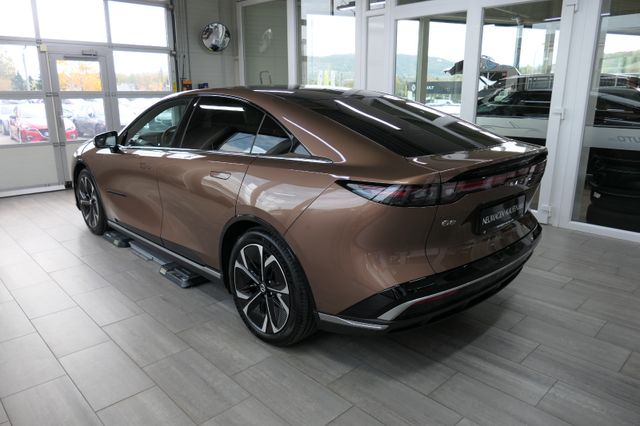LED-Frontscheinwerfer & -Tagfahrlicht, LED-Lichtsignatur, vorne und hinten, LED-Rückleuchte mit durchgehendem Leuchtband, Panorama-Glasdach, dunkel getönt und wärmereflektierend, Beleuchteter Signature-Wing, Elektrische Heckklappe, Elektrischer Heckspoiler, Rahmenlose Türen mit flächenbündigen Türgriffen, Beheizte Außenspiegel, elektrisch einstell-/anklappbar mit Memory-Funktion und integrierten LED-Seitenblinkern, 19-Zoll-Aero-Leichtmetallfelgen, Frunk: Vorderer Gepäckraum, Heck- und Seitenscheiben hinten abgedunkelt, Licht- und Regensensor