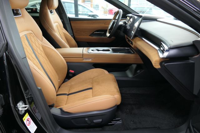 LED-Frontscheinwerfer & -Tagfahrlicht, LED-Lichtsignatur, vorne und hinten, LED-Rückleuchte mit durchgehendem Leuchtband, Panorama-Glasdach, dunkel getönt und wärmereflektierend, Beleuchteter Signature-Wing, Elektrische Heckklappe, Elektrischer Heckspoiler, Rahmenlose Türen mit flächenbündigen Türgriffen, Beheizte Außenspiegel, elektrisch einstell-/anklappbar mit Memory-Funktion und integrierten LED-Seitenblinkern, 19-Zoll-Aero-Leichtmetallfelgen, Frunk: Vorderer Gepäckraum, Heck- und Seitenscheiben hinten abgedunkelt, Licht- und Regensensor