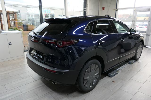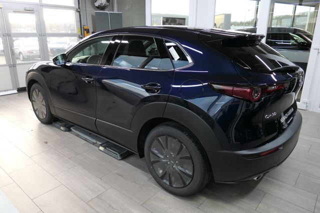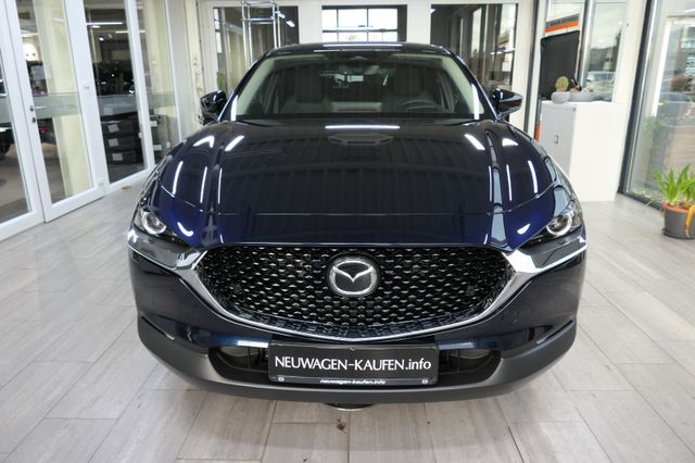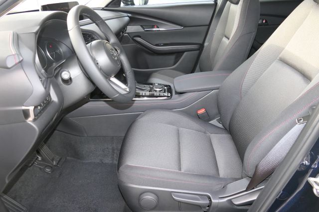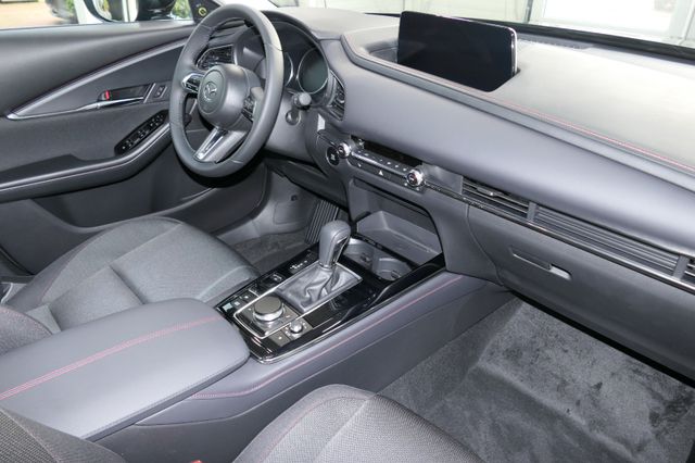 18-Zoll-Leichtmetallfelgen in Schwarz, Elektrische Heckklappe, A-/B-Säulenverkleidung mit Hochglanzfinish, Klimatisierungsautomatik, Digitalradio-Tuner (DAB+) und Mazda Connect mit 10,25 Zoll Display, Frontairbag, Heck- und Seitenscheiben hinten abgedunkelt, Airbags: Kopf-/ Schulter-Airbag vorne und hinten; Seitenairbag vorne; Frontairbags, Knie-Airbag für Fahrer, Beifahrer-Airbag-Deaktivierung, Freisprecheinrichtung mit Sprachsteuerung und Bluetooth® mit Audio-Streaming, Notbrems-Warnblinkautomatik (ESS), Digitalradio-Tuner (DAB+), Auto Door Lock, Rückfahrkamera, Auspuffanlage, zweiflutig, Mazda SD-Navigationssystem, Innenrückspiegel automatisch abblendend, Sport- oder Normal-Modus (nur i.V.m. Skyactiv-Drive Automatikgetriebe), Spurwechselassistent Plus (BSM) und Ausparkhilfe (RCTA), Advanced Head-up Display, Wireless Apple Carplay und Wireless Android Auto, Elektronische Parkbremse mit Auto-Hold Funktion, Qi: Induktives Laden (für kompatible Smartphones), Alarmanlage, ISOFIX® Kindersitzhalterung für die äußeren Sitze, hinten, Mittelarmlehne, vorne mit 2 USB-C-Anschlüssen, Geschwindigkeitsregelanlage mit Geschwindigkeitsbegrenzer, Fernlichtassistent (HBC), Fahrer- und Beifahrersitz höheneinstellbar (Einstellung der Neigung für den Fahrersitz), Müdigkeitserkennung (DAA), Berganfahrassistent (HLA), Beleuchtetes Handschuhfach, Dynamische Stabilitätskontrolle (DSC), Leselampen, vorne, Voll-LED-Scheinwerfer mit automatischer Leuchtweitenregulierung, LED-Rückleuchten und Blinker, Halogen-Tagfahrlicht, LED-Innenraum- und Kofferraumbeleuchtung, Wegfahrsperre, elektronisch, Komfortblinkfunktion, Geschwindigkeitsbegrenzer mit Komfortschaltung (ISA), 3-Speichen-Sport-Lederlenkrad, Einparkhilfe, vorne und hinten, Adaptive Geschwindigkeitsregelanlage mit Stauassistenzfunktion (i.V.m. Skyactiv-Drive Automatik) (MRCC), Frontgrill in Schwarz glänzend, Zentralverriegelung mit Funkfernbedienung, Notbremsassistent (SBS) mit Fußgänger- und Radfahrererkennung, Dachheckspoiler in Schwarz, LogIn: Schlüsselloses Zugangssystem, Elektrische Fensterheber, vorne und hinten, mit Komfortfunktion, Mittelarmlehne, hinten, Gurtstraffer mit Gurtkraftbegrenzer, vorne und hinten außen, Rücksitzlehnen im Verhältnis 60:40 geteilt klappbar, Regensensor, Warnleuchte und -ton für nicht angelegte Sicherheitsgurte, Reifendruckkontrollsystem, direkt (TPMS), Mobilitäts-Kit mit Kompressor und Reifendichtmittel, Motor Start-/Stop-Knopf, Lenkradbedientasten für Audioquelle und Lautstärke, Freisprechanlage und Geschwindigkeitsregelanlage, Make-up-Spiegel für Fahrer und Beifahrer, Lenksäule längeneinstellbar, Lenksäule höheneinstellbar