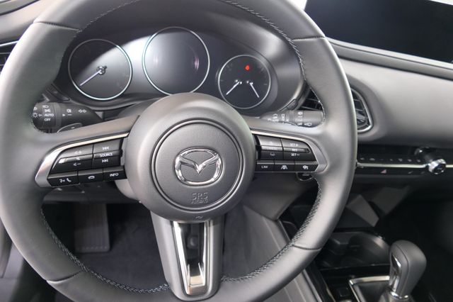 Sport- oder Normal-Modus (nur i.V.m. Skyactiv-Drive Automatikgetriebe), Elektronische Parkbremse mit Auto-Hold Funktion, Motor-Start-/Stopp-Knopf mit Chromapplikation, Rahmenloser Innenspiegel, Mittelarmlehne, vorne mit 2 USB-C-Anschlüssen, Fahrer- und Beifahrersitz höheneinstellbar (Einstellung der Neigung für den Fahrersitz), Beleuchtetes Handschuhfach, Leselampen, vorne, LED-Innenraum- und Kofferraumbeleuchtung, 3-Speichen-Sport-Lederlenkrad mit Schaltwippen (bei SKYACTIV-Drive Automatikgetriebe), Zentralverriegelung mit Funkfernbedienung, Elektrische Fensterheber, vorne und hinten, mit Komfortfunktion, Mittelarmlehne, hinten, Rücksitzlehnen im Verhältnis 60:40 geteilt klappbar, Motor Start-/Stop-Knopf, Lenkradbedientasten für Audioquelle und Lautstärke, Freisprechanlage und Geschwindigkeitsregelanlage, Make-up-Spiegel für Fahrer und Beifahrer, Lenksäule längeneinstellbar, Lenksäule höheneinstellbar, i-stop: Motor Stopp-/Start-System, Matrix LED-Lichtsystem mit 40 Leuchteinheiten, A-/B-Säulenverkleidung mit Hochglanzfinish, Heck- und Seitenscheiben hinten abgedunkelt, Notbrems-Warnblinkautomatik, Berganfahrassistent, Komfortblinkfunktion, Außenspiegel automatisch abblendend (Fahrerseite), Einparkhilfe, vorne und hinten, Frontgrill in Schwarz glänzend, Dachheckspoiler in Schwarz, LogIn: Schlüsselloses Zugangssystem, Regensensor, Frontairbag, Airbags: Kopf-/ Schulter-Airbag vorne und hinten; Seitenairbag vorne; Frontairbags, Knie-Airbag für Fahrer, Beifahrer-Airbag-Deaktivierung, Spurwechselassistent Plus (BSM) und Ausparkhilfe, Alarmanlage, ISOFIX® Kindersitzhalterung für die äußeren Sitze, hinten, Geschwindigkeitsregelanlage mit Geschwindigkeitsbegrenzer, Müdigkeitserkennung, Dynamische Stabilitätskontrolle, Wegfahrsperre, elektronisch, Geschwindigkeitsbegrenzer mit Komfortschaltung, Adaptive Geschwindigkeitsregelanlage mit Stauassistenzfunktion (i.V.m. Skyactiv-Drive Automatik) (MRCC), Notbremsassistent (SBS) mit Fußgänger- und Radfahrererkennung, Gurtstraffer mit Gurtkraftbegrenzer, vorne und hinten außen, Warnleuchte und -ton für nicht angelegte Sicherheitsgurte, Reifendruckkontrollsystem, direkt, Mobilitäts-Kit mit Kompressor und Reifendichtmittel, Digitalradio-Tuner (DAB+) mit 10,25 Zoll Display, Freisprecheinrichtung mit Sprachsteuerung und Bluetooth® mit Audio-Streaming, Digitalradio-Tuner (DAB+), Mazda SD-Navigationssystem, Advanced Head-up Display, Wireless Apple Carplay und Wireless Android Auto, Qi: Induktives Laden (für kompatible Smartphones)
