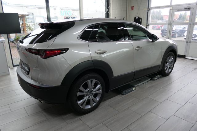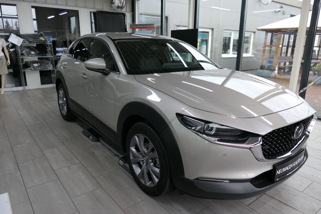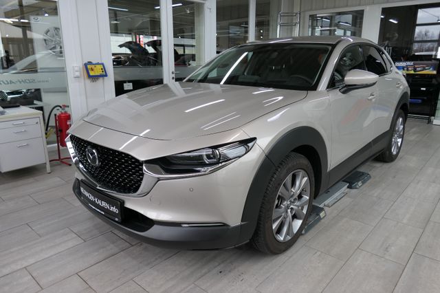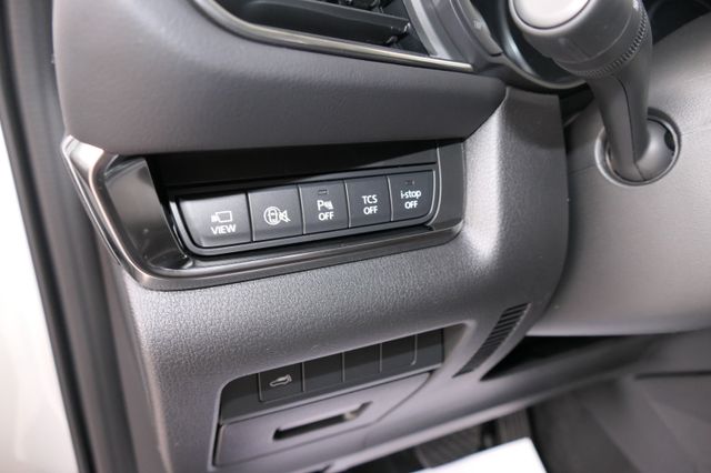 Sport- oder Normal-Modus (nur i.V.m. Skyactiv-Drive Automatikgetriebe), Elektronische Parkbremse mit Auto-Hold Funktion, Motor-Start-/Stopp-Knopf mit Chromapplikation, Rahmenloser Innenspiegel, Mittelarmlehne, vorne mit 2 USB-C-Anschlüssen, Fahrer- und Beifahrersitz höheneinstellbar (Einstellung der Neigung für den Fahrersitz), Beleuchtetes Handschuhfach, Leselampen, vorne, LED-Innenraum- und Kofferraumbeleuchtung, 3-Speichen-Sport-Lederlenkrad mit Schaltwippen (bei SKYACTIV-Drive Automatikgetriebe), Zentralverriegelung mit Funkfernbedienung, Elektrische Fensterheber, vorne und hinten, mit Komfortfunktion, Mittelarmlehne, hinten, Rücksitzlehnen im Verhältnis 60:40 geteilt klappbar, Motor Start-/Stop-Knopf, Lenkradbedientasten für Audioquelle und Lautstärke, Freisprechanlage und Geschwindigkeitsregelanlage, Make-up-Spiegel für Fahrer und Beifahrer, Lenksäule längeneinstellbar, Lenksäule höheneinstellbar, i-stop: Motor Stopp-/Start-System, Matrix LED-Lichtsystem mit 40 Leuchteinheiten, A-/B-Säulenverkleidung mit Hochglanzfinish, Heck- und Seitenscheiben hinten abgedunkelt, Notbrems-Warnblinkautomatik, Berganfahrassistent, Komfortblinkfunktion, Außenspiegel automatisch abblendend (Fahrerseite), Einparkhilfe, vorne und hinten, Frontgrill in Schwarz glänzend, Dachheckspoiler in Schwarz, LogIn: Schlüsselloses Zugangssystem, Regensensor, Frontairbag, Airbags: Kopf-/ Schulter-Airbag vorne und hinten; Seitenairbag vorne; Frontairbags, Knie-Airbag für Fahrer, Beifahrer-Airbag-Deaktivierung, Spurwechselassistent Plus (BSM) und Ausparkhilfe, Alarmanlage, ISOFIX® Kindersitzhalterung für die äußeren Sitze, hinten, Geschwindigkeitsregelanlage mit Geschwindigkeitsbegrenzer, Müdigkeitserkennung, Dynamische Stabilitätskontrolle, Wegfahrsperre, elektronisch, Geschwindigkeitsbegrenzer mit Komfortschaltung, Adaptive Geschwindigkeitsregelanlage mit Stauassistenzfunktion (i.V.m. Skyactiv-Drive Automatik) (MRCC), Notbremsassistent (SBS) mit Fußgänger- und Radfahrererkennung, Gurtstraffer mit Gurtkraftbegrenzer, vorne und hinten außen, Warnleuchte und -ton für nicht angelegte Sicherheitsgurte, Reifendruckkontrollsystem, direkt, Mobilitäts-Kit mit Kompressor und Reifendichtmittel, Digitalradio-Tuner (DAB+) mit 10,25 Zoll Display, Freisprecheinrichtung mit Sprachsteuerung und Bluetooth® mit Audio-Streaming, Digitalradio-Tuner (DAB+), Mazda SD-Navigationssystem, Advanced Head-up Display, Wireless Apple Carplay und Wireless Android Auto, Qi: Induktives Laden (für kompatible Smartphones)