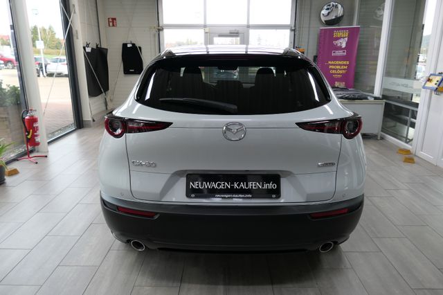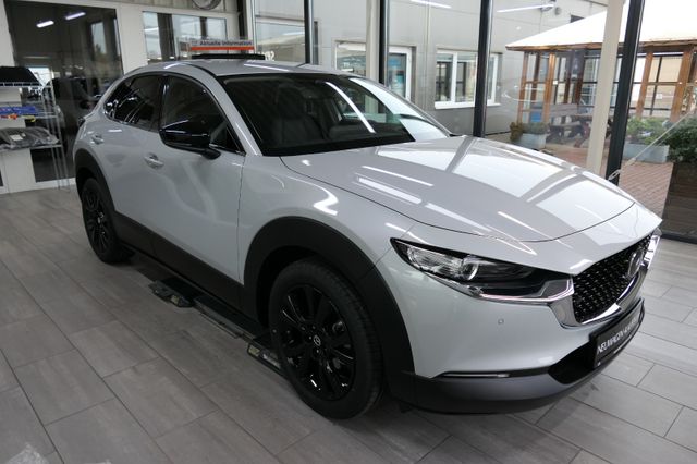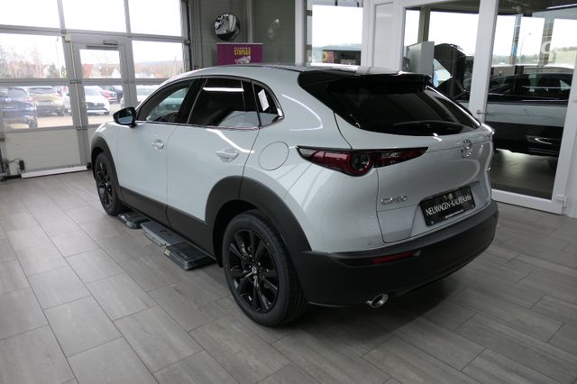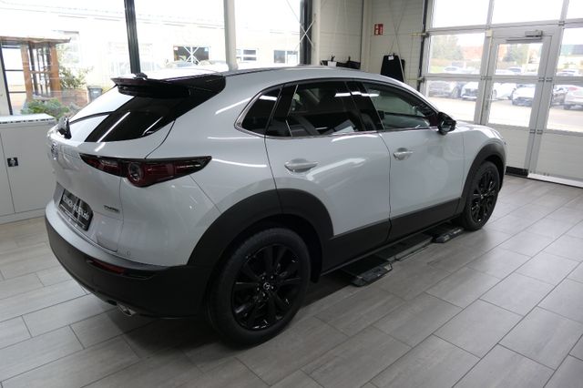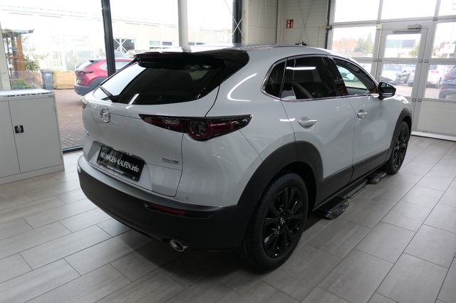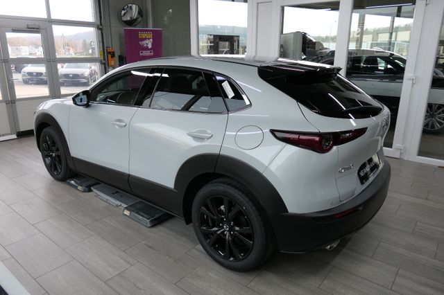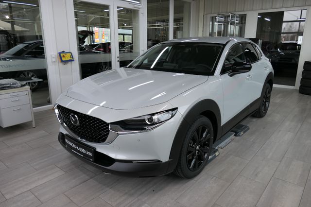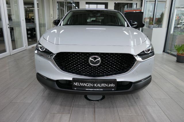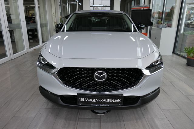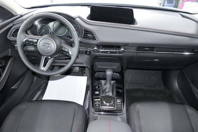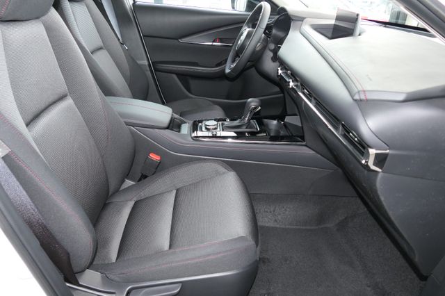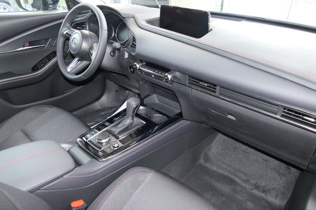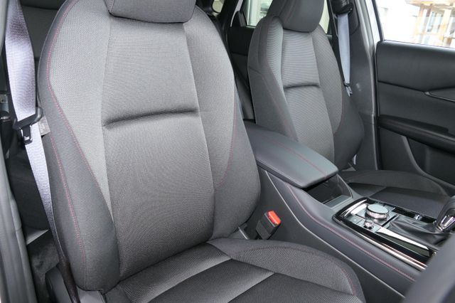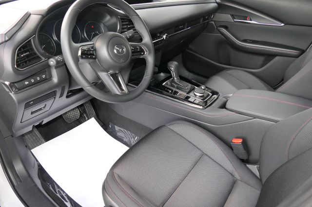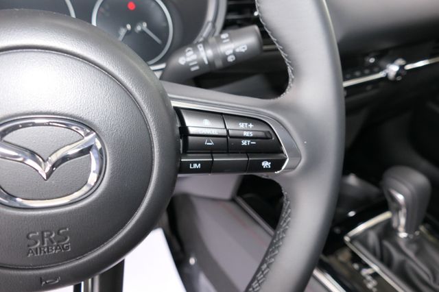 18-Zoll-Leichtmetallfelgen in Schwarz, Elektrische Heckklappe, A-/B-Säulenverkleidung mit Hochglanzfinish, Klimatisierungsautomatik, Digitalradio-Tuner (DAB+) und Mazda Connect mit 10,25 Zoll Display, Frontairbag, Heck- und Seitenscheiben hinten abgedunkelt, Airbags: Kopf-/ Schulter-Airbag vorne und hinten; Seitenairbag vorne; Frontairbags, Knie-Airbag für Fahrer, Beifahrer-Airbag-Deaktivierung, Freisprecheinrichtung mit Sprachsteuerung und Bluetooth® mit Audio-Streaming, Notbrems-Warnblinkautomatik (ESS), Digitalradio-Tuner (DAB+), Auto Door Lock, Rückfahrkamera, Auspuffanlage, zweiflutig, Mazda SD-Navigationssystem, Innenrückspiegel automatisch abblendend, Sport- oder Normal-Modus (nur i.V.m. Skyactiv-Drive Automatikgetriebe), Spurwechselassistent Plus (BSM) und Ausparkhilfe (RCTA), Advanced Head-up Display, Wireless Apple Carplay und Wireless Android Auto, Elektronische Parkbremse mit Auto-Hold Funktion, Qi: Induktives Laden (für kompatible Smartphones), Alarmanlage, ISOFIX® Kindersitzhalterung für die äußeren Sitze, hinten, Mittelarmlehne, vorne mit 2 USB-C-Anschlüssen, Geschwindigkeitsregelanlage mit Geschwindigkeitsbegrenzer, Fernlichtassistent (HBC), Fahrer- und Beifahrersitz höheneinstellbar (Einstellung der Neigung für den Fahrersitz), Müdigkeitserkennung (DAA), Berganfahrassistent (HLA), Beleuchtetes Handschuhfach, Dynamische Stabilitätskontrolle (DSC), Leselampen, vorne, Voll-LED-Scheinwerfer mit automatischer Leuchtweitenregulierung, LED-Rückleuchten und Blinker, Halogen-Tagfahrlicht, LED-Innenraum- und Kofferraumbeleuchtung, Wegfahrsperre, elektronisch, Komfortblinkfunktion, Geschwindigkeitsbegrenzer mit Komfortschaltung (ISA), 3-Speichen-Sport-Lederlenkrad, Einparkhilfe, vorne und hinten, Adaptive Geschwindigkeitsregelanlage mit Stauassistenzfunktion (i.V.m. Skyactiv-Drive Automatik) (MRCC), Frontgrill in Schwarz glänzend, Zentralverriegelung mit Funkfernbedienung, Notbremsassistent (SBS) mit Fußgänger- und Radfahrererkennung, Dachheckspoiler in Schwarz, LogIn: Schlüsselloses Zugangssystem, Elektrische Fensterheber, vorne und hinten, mit Komfortfunktion, Mittelarmlehne, hinten, Gurtstraffer mit Gurtkraftbegrenzer, vorne und hinten außen, Rücksitzlehnen im Verhältnis 60:40 geteilt klappbar, Regensensor, Warnleuchte und -ton für nicht angelegte Sicherheitsgurte, Reifendruckkontrollsystem, direkt (TPMS), Mobilitäts-Kit mit Kompressor und Reifendichtmittel, Motor Start-/Stop-Knopf, Lenkradbedientasten für Audioquelle und Lautstärke, Freisprechanlage und Geschwindigkeitsregelanlage, Make-up-Spiegel für Fahrer und Beifahrer, Lenksäule längeneinstellbar, Lenksäule höheneinstellbar