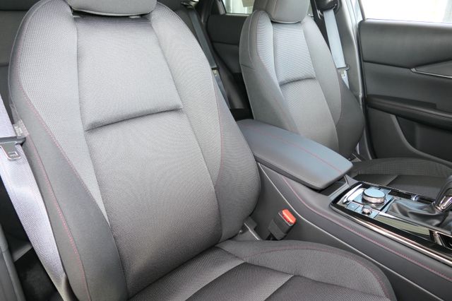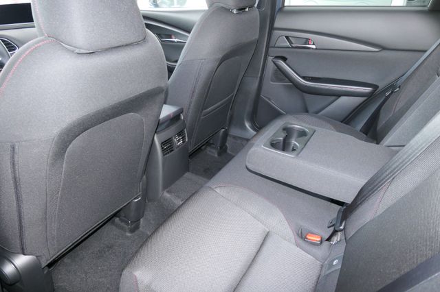 18-Zoll-Leichtmetallfelgen in Schwarz, Elektrische Heckklappe, A-/B-Säulenverkleidung mit Hochglanzfinish, Klimatisierungsautomatik, Digitalradio-Tuner (DAB+) und Mazda Connect mit 10,25 Zoll Display, Frontairbag, Heck- und Seitenscheiben hinten abgedunkelt, Airbags: Kopf-/ Schulter-Airbag vorne und hinten; Seitenairbag vorne; Frontairbags, Knie-Airbag für Fahrer, Beifahrer-Airbag-Deaktivierung, Freisprecheinrichtung mit Sprachsteuerung und Bluetooth® mit Audio-Streaming, Notbrems-Warnblinkautomatik (ESS), Digitalradio-Tuner (DAB+), Auto Door Lock, Rückfahrkamera, Auspuffanlage, zweiflutig, Mazda SD-Navigationssystem, Innenrückspiegel automatisch abblendend, Sport- oder Normal-Modus (nur i.V.m. Skyactiv-Drive Automatikgetriebe), Spurwechselassistent Plus (BSM) und Ausparkhilfe (RCTA), Advanced Head-up Display, Wireless Apple Carplay und Wireless Android Auto, Elektronische Parkbremse mit Auto-Hold Funktion, Qi: Induktives Laden (für kompatible Smartphones), Alarmanlage, ISOFIX® Kindersitzhalterung für die äußeren Sitze, hinten, Mittelarmlehne, vorne mit 2 USB-C-Anschlüssen, Geschwindigkeitsregelanlage mit Geschwindigkeitsbegrenzer, Fernlichtassistent (HBC), Fahrer- und Beifahrersitz höheneinstellbar (Einstellung der Neigung für den Fahrersitz), Müdigkeitserkennung (DAA), Berganfahrassistent (HLA), Beleuchtetes Handschuhfach, Dynamische Stabilitätskontrolle (DSC), Leselampen, vorne, Voll-LED-Scheinwerfer mit automatischer Leuchtweitenregulierung, LED-Rückleuchten und Blinker, Halogen-Tagfahrlicht, LED-Innenraum- und Kofferraumbeleuchtung, Wegfahrsperre, elektronisch, Komfortblinkfunktion, Geschwindigkeitsbegrenzer mit Komfortschaltung (ISA), 3-Speichen-Sport-Lederlenkrad, Einparkhilfe, vorne und hinten, Adaptive Geschwindigkeitsregelanlage mit Stauassistenzfunktion (i.V.m. Skyactiv-Drive Automatik) (MRCC), Frontgrill in Schwarz glänzend, Zentralverriegelung mit Funkfernbedienung, Notbremsassistent (SBS) mit Fußgänger- und Radfahrererkennung, Dachheckspoiler in Schwarz, LogIn: Schlüsselloses Zugangssystem, Elektrische Fensterheber, vorne und hinten, mit Komfortfunktion, Mittelarmlehne, hinten, Gurtstraffer mit Gurtkraftbegrenzer, vorne und hinten außen, Rücksitzlehnen im Verhältnis 60:40 geteilt klappbar, Regensensor, Warnleuchte und -ton für nicht angelegte Sicherheitsgurte, Reifendruckkontrollsystem, direkt (TPMS), Mobilitäts-Kit mit Kompressor und Reifendichtmittel, Motor Start-/Stop-Knopf, Lenkradbedientasten für Audioquelle und Lautstärke, Freisprechanlage und Geschwindigkeitsregelanlage, Make-up-Spiegel für Fahrer und Beifahrer, Lenksäule längeneinstellbar, Lenksäule höheneinstellbar