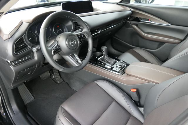 Alexa Sprachsteuerung, BOSE® Sound-System mit 12 Lautsprechern, Freisprecheinrichtung mit Sprachsteuerung und Bluetooth® mit Audio-Streaming, Digitalradio-Tuner (DAB+), Mazda Navigationssystem, Advanced Head-up Display, Wireless Apple Carplay® und Wireless Android Auto™, Qi: Induktives Laden (für kompatible Smartphones), Klimatisierungsautomatik, Automatische Türverriegelung während der Fahrt, Sport- oder Normal-Modus (nur i.V.m. Skyactiv-Drive Automatikgetriebe), Elektronische Parkbremse mit Auto-Hold Funktion, Motor-Start-/Stopp-Knopf mit Chromapplikation, Rahmenloser Innenspiegel, Mittelarmlehne, vorne mit 2 USB-C-Anschlüssen, Fahrer- und Beifahrersitz höheneinstellbar (Einstellung der Neigung für den Fahrersitz), Beleuchtetes Handschuhfach, Chromapplikationen am Handschuhfach, Chromapplikationen am Lenkrad, Leselampen, vorne, LED-Innenraum- und Kofferraumbeleuchtung, 3-Speichen-Sport-Lederlenkrad inkl. Lenkradheizung mit Schaltwippen (bei SKYACTIV-Drive Automatikgetriebe), Sonnenbrillenhalterung im Dachhimmel, Zentralverriegelung mit Funkfernbedienung, Elektrische Fensterheber, vorne und hinten, mit Komfortfunktion, Mittelarmlehne, hinten, Rücksitzlehnen im Verhältnis 60:40 geteilt klappbar, Luftausströmer hinten, Motor Start-/Stop-Knopf, Lenkradbedientasten für Audioquelle und Lautstärke, Freisprechanlage und Geschwindigkeitsregelanlage, Make-up-Spiegel für Fahrer und Beifahrer, Lenksäule längeneinstellbar + Lenksäule höheneinstellbar, Matrix LED-Lichtsystem mit 40 Leuchteinheiten inkl. LED-Lichtsignatur und -Tagfahrlicht, Außenspiegel in Wagenfarbe, Heck- und Seitenscheiben hinten abgedunkelt, Notbrems-Warnblinkautomatik (ESS), Berganfahrassistent (HLA), Komfortblinkfunktion, Memory-Funktion für Fahrersitz, Head-up Display und Außenspiegel, Automatisch abblendender Innen- und Außenspiegel (Fahrerseite), Einparkhilfe, vorne und hinten, Elektrische Heckklappe, Kühlergrill lackiert, Dachheckspoiler in Schwarz, Säulenverkleidung mit Hochglanzfinish-, LogIn: Schlüsselloses Zugangssystem; Zentralverriegelung mit Funkfernbedienung, Glasschiebedach, elektrisch, Enteiserfunktion für Scheibenwischer, Regensensor, i-stop: Motor Stopp-/Start-System, Frontüberwachung (FCTA), Frontairbags; Seitenairbags mit integriertem Kopf-/Schulter-Schutz, Spurwechselassistent Plus (BSM) und Ausparkhilfe (RCTA), Alarmanlage, ISOFIX® Kindersitzhalterung für die äußeren Sitze in der 2. Sitzreihe, Geschwindigkeitsregelanlage mit Geschwindigkeitsbegrenzer, Müdigkeitserkennung (DAA), Dynamische Stabilitätskontrolle (DSC), E-Call Notrufsystem, Wegfahrsperre, elektronisch, Geschwindigkeitsbegrenzer mit Komfortschaltung, Knieairbag Fahrerseite, Adaptive Geschwindigkeitsregelanlage mit Stauassistenzfunktion (MRCC), Aufmerksamkeitsassistent (DM), Beifahrerairbag abschaltbar, Notbremsassistent (SBS) mit Fußgänger- und Radfahrererkennung, Gurtstraffer mit Gurtkraftbegrenzer, vorne und hinten außen, Notbremsassistent (SBS), Reifendruckkontrollsystem, direkt (TPMS), Mobilitäts-Kit mit Kompressor und Reifendichtmittel, Verkehrszeichenerkennung (TSR), 360° Monitor