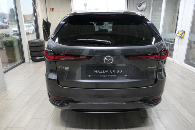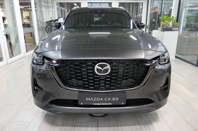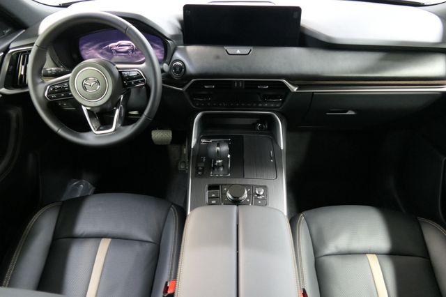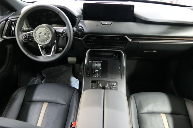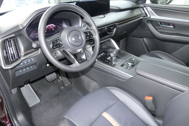 Innenausstattung6-Konfiguration, Klimatisierungsautomatik, Automatische Türverriegelung während der Fahrt, Ambientebeleuchtung in den Türen vorne und hinten, Mi-Drive Fahrmoduswahl: Normal, Sport, Off-Road, i.V.m. original Anhängerkupplung: Towing (Zugbetrieb), Elektronische Parkbremse mit Auto-Hold Funktion, Rahmenloser Innenspiegel, Mittelarmlehne, vorne mit 2 USB-C-Anschlüssen, LED-Innenraum- und Kofferraumbeleuchtung, 3-Speichen-Sport-Lederlenkrad inkl. Lenkradheizung mit Schaltwippen (bei SKYACTIV-Drive Automatikgetriebe) und mit Lenkradheizung, Sonnenbrillenhalterung im Dachhimmel, Driver Personalization System, Zentralverriegelung mit Funkfernbedienung, Elektrische Fensterheber, vorne und hinten, mit Komfortfunktion, 2 USB-C-Anschlüsse, hinten, Motor Start-/Stop-Knopf, Lenkradbedientasten für Audioquelle und Lautstärke, Freisprechanlage und Geschwindigkeitsregelanlage, Make-up-Spiegel für Fahrer und Beifahrer, Elektrische Lenkradverstellung mit Memory-Funktion, Gepäckraumabdeckung