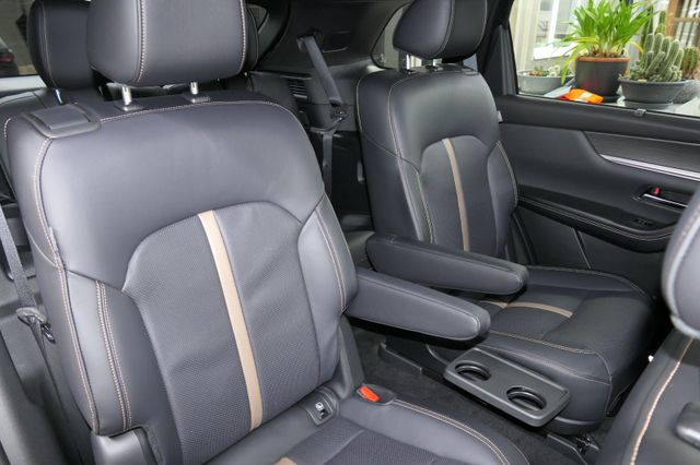 Center-Airbag vorne, Frontairbags; Seitenairbags mit integriertem Kopf-/Schulter-Schutz, Spurwechselassistent Plus mit Lenkunterstützung (Blind Spot Assist) und Ausstiegswarnung bei von hinten herannahenden Verkehrsteilnehmern, ISOFIX® Kindersitzhalterung für die äußeren Sitze in der 2. Sitzreihe, Geschwindigkeitsregelanlage mit Geschwindigkeitsbegrenzer, Dynamische Stabilitätskontrolle mit Traktionskontrollsystem und Anhängerstabilitätskontrolle, Müdigkeitserkennung (DAA), Aufmerksamkeitsassistent (DM), E-Call Notrufsystem, Frontüberwachung (FCTA), Wegfahrsperre, elektronisch, Geschwindigkeitsbegrenzer mit Komfortschaltung, Knieairbag Fahrerseite, Adaptive Geschwindigkeitsregelanlage mit Stauassistenzfunktion (MRCC), Beifahrerairbag abschaltbar, Gurtstraffer mit Gurtkraftbegrenzer, vorne und hinten außen, Reifendruckkontrollsystem, Mobilitäts-Kit mit Kompressor und Reifendichtmittel, Verkehrszeichenerkennung