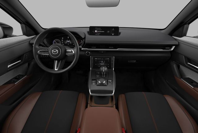 Typ2-Ladekabel (13A, Länge: 8m) für Haushaltssteckdose (Mode2) ; Typ2-Ladekabel für Ladestationen (Mode3, Länge: 4m), Matrix LED-Lichtsystem (ALH) mit Lichtsignatur und Scheinwerferreinigungsanlage, Fensterleisten mit Hochglanzfinish, Notbrems-Warnblinkautomatik (ESS), Außenspiegel mit integrierten Seitenblinkern, Signature Wing (Einfassung Kühlergrill) in Dark-Chrome, Berganfahrassistent (HLA), 3. Bremslicht, hochgesetzt, Komfortblinkfunktion, Memory-Funktion für Fahrersitz, Head-up Display und Außenspiegel, Außenspiegel elektrisch einstell- und beheizbar, automatisch abblendend (Fahrerseite), Wärmepumpe, Einparkhilfe, vorne und hinten, Lichtsignatur, hinten, Heck- und Seitenscheiben hinten abgedunkelt; D-Säulenverkleidung mit Mazda-Schriftzug, LogIn: Schlüsselloses Zugangssystem, Enteiserfunktion für Scheibenwischer, Regensensor