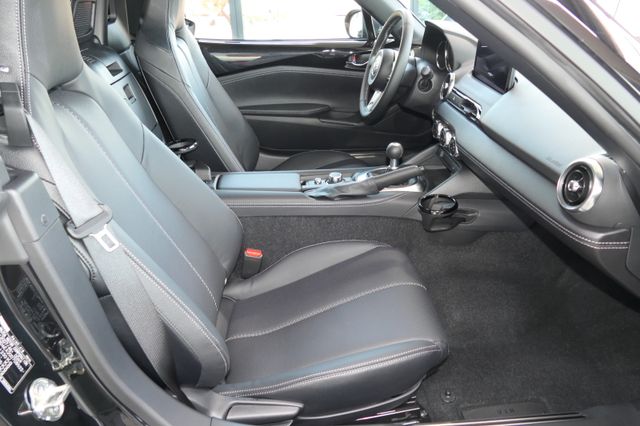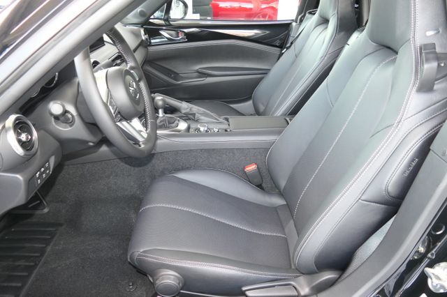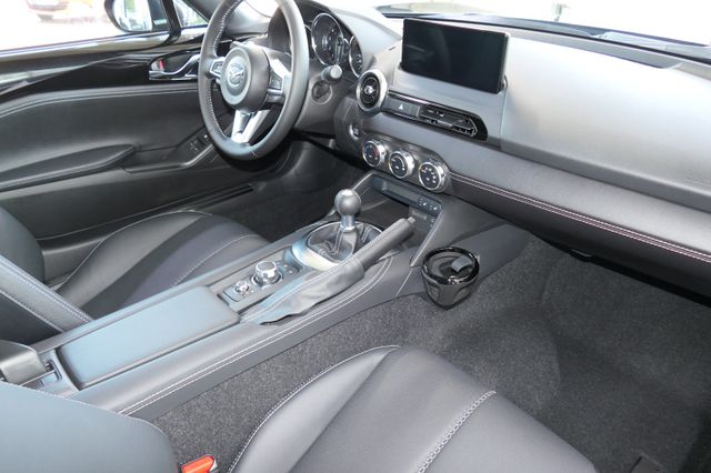 Kli­ma­ti­sie­rungs­au­to­ma­tik, Sitz­leh­ne für Fah­rer- und Bei­fah­rer­sitz nei­gungs­ver­stell­bar, Sitz­flä­che für den Fah­rer­sitz nei­gungs­ver­stell­bar, Mitt­l­kon­so­le in Kunst­le­der ein­ge­fasst, Schwarz, Fah­rer- und Bei­fah­rer­sitz hö­hen­ein­stell­bar (Ein­stel­lung der Nei­gung für den Fah­rer­sitz), 3-Spei­chen-Sport-Le­der­lenk­rad, Zen­tral­ver­rie­ge­lung mit Funk­fern­be­die­nung, Ein­stiegs­leis­ten aus Edel­stahl, Le­der­schalt­kn­auf, Son­nen­blen­de mit Make-up-Spie­gel für Fah­rer und Bei­fah­rer, Lenk­säu­le län­gen­ein­stell­bar, Lenk­säu­le hö­hen­ein­stell­bar, Ma­trix-LED Licht­sys­tem, Au­ßen­spie­gel in Wa­gen­far­be, Stoff­ver­deck in Schwarz, Not­brems-Warn­b­link­au­to­ma­tik (ESS), be­heiz­ba­re Au­ßen­spie­gel, Voll-LED Schein­wer­fer, Kom­fort­b­link­funk­ti­on, Ein­park­hil­fe, hin­ten, Log­In: Schlüs­sel­lo­ses Zu­gangs­sys­tem, Re­gen­sen­sor, Fron­t­air­bags; Sei­ten­air­bags mit in­te­grier­tem Kopf-/Schul­ter-Schutz, Spur­wech­sel­as­sis­tent Plus (BSM) und Auspark­hil­fe (RCTA), ISO­FIX® Kin­der­sitz­hal­te­rung auf dem Bei­fah­rer­sitz, Ge­schwin­dig­keits­re­gel­an­la­ge mit Ge­schwin­dig­keits­be­gren­zer, Mü­dig­keits­er­ken­nung (DAA), Dy­na­mi­sche Sta­bi­li­täts­kon­trol­le (DSC) mit Track Mode, Weg­fahr­sper­re, elek­tro­nisch, Ge­schwin­dig­keits­be­gren­zer mit Kom­fort­schal­tung, Bei­fah­rer­air­bag ab­schalt­bar, City-Not­brems­as­sis­tent (SCBS), Rück­fahr­ka­me­ra und Auspark­hil­fe mit Brems­un­ter­stüt­zung (SBS-RC), Warn­leuch­te und -ton für nicht an­ge­leg­te Si­cher­heits­gur­te, Not­brems­as­sis­tent (SBS), Rei­fen­druck­kon­troll­sys­tem, di­rekt (TPMS), Mo­bi­li­täts-Kit mit Kom­pres­sor und Rei­fen­dicht­mit­tel, Ver­kehrs­zei­chen­er­ken­nung (TSR), BOSE® Sound-Sys­tem® mit 9 Laut­spre­chern inkl. Laut­spre­chern in den Kopf­stüt­zen und 22,3 cm (8,8 Zoll) Mul­ti­me­dia­dis­play, in Ver­bin­dung mit An­dro­id Auto™ und Ap­ple Car­Play® als Touch­scre­en nutz­bar, Mazda Na­vi­ga­ti­ons­sys­tem, Wireless Ap­ple Car­play® und Wireless An­dro­id Auto™