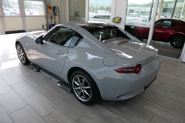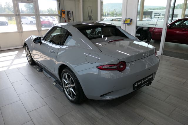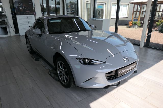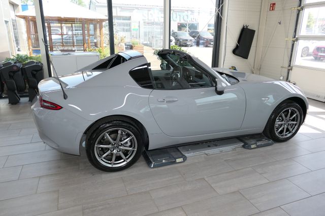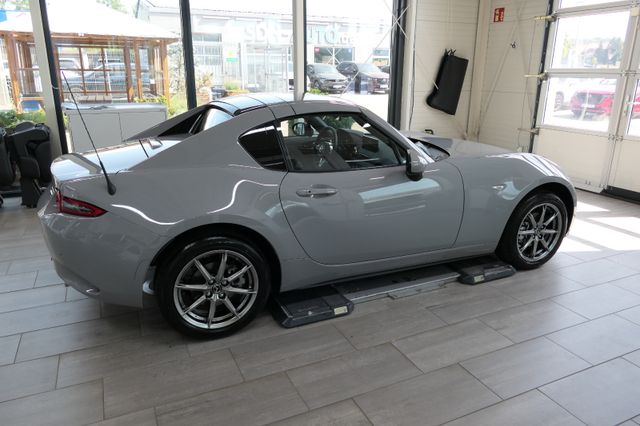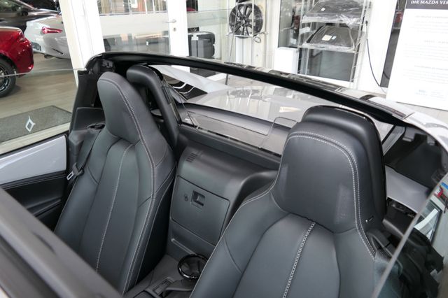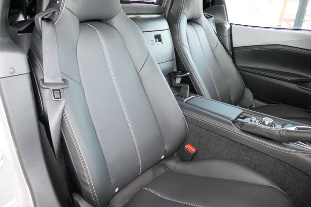 Klimatisierungsautomatik, Sitzlehne für Fahrer- und Beifahrersitz neigungsverstellbar, Sitzfläche für den Fahrersitz neigungsverstellbar, Mittlkonsole in Kunstleder eingefasst, Schwarz, Fahrer- und Beifahrersitz höheneinstellbar (Einstellung der Neigung für den Fahrersitz), 3-Speichen-Sport-Lederlenkrad, Zentralverriegelung mit Funkfernbedienung, Einstiegsleisten aus Edelstahl, Lederschaltknauf, Sonnenblende mit Make-up-Spiegel für Fahrer und Beifahrer, Lenksäule längeneinstellbar, Lenksäule höheneinstellbar, Matrix-LED Lichtsystem, Außenspiegel in Wagenfarbe, Stoffverdeck in Schwarz, Notbrems-Warnblinkautomatik (ESS), beheizbare Außenspiegel, Voll-LED Scheinwerfer, Komfortblinkfunktion, Einparkhilfe, hinten, LogIn: Schlüsselloses Zugangssystem, Regensensor, Frontairbags; Seitenairbags mit integriertem Kopf-/Schulter-Schutz, Spurwechselassistent Plus (BSM) und Ausparkhilfe (RCTA), ISOFIX® Kindersitzhalterung auf dem Beifahrersitz, Geschwindigkeitsregelanlage mit Geschwindigkeitsbegrenzer, Müdigkeitserkennung (DAA), Dynamische Stabilitätskontrolle (DSC) mit Track Mode, Wegfahrsperre, elektronisch, Geschwindigkeitsbegrenzer mit Komfortschaltung, Beifahrerairbag abschaltbar, City-Notbremsassistent (SCBS), Rückfahrkamera und Ausparkhilfe mit Bremsunterstützung (SBS-RC), Warnleuchte und -ton für nicht angelegte Sicherheitsgurte, Notbremsassistent (SBS), Reifendruckkontrollsystem, direkt (TPMS), Mobilitäts-Kit mit Kompressor und Reifendichtmittel, Verkehrszeichenerkennung (TSR), BOSE® Sound-System® mit 9 Lautsprechern inkl. Lautsprechern in den Kopfstützen und 22,3 cm (8,8 Zoll) Multimediadisplay, in Verbindung mit Android Auto™ und Apple CarPlay® als Touchscreen nutzbar, Mazda Navigationssystem, Wireless Apple Carplay® und Wireless Android Auto™