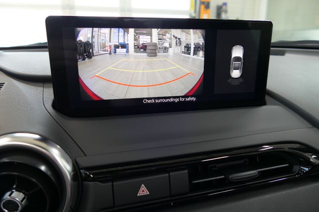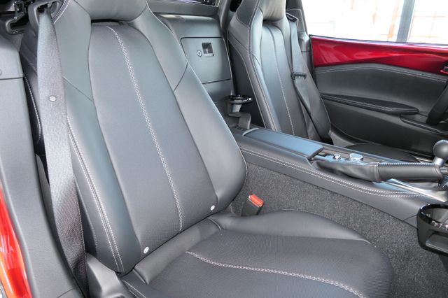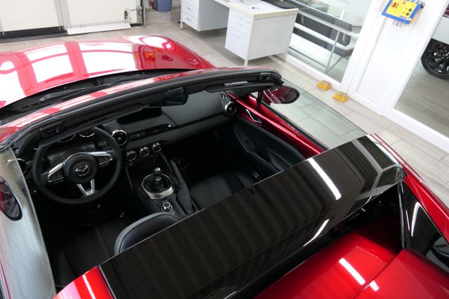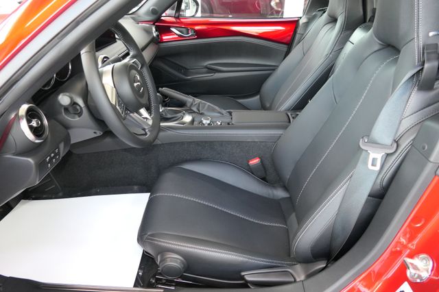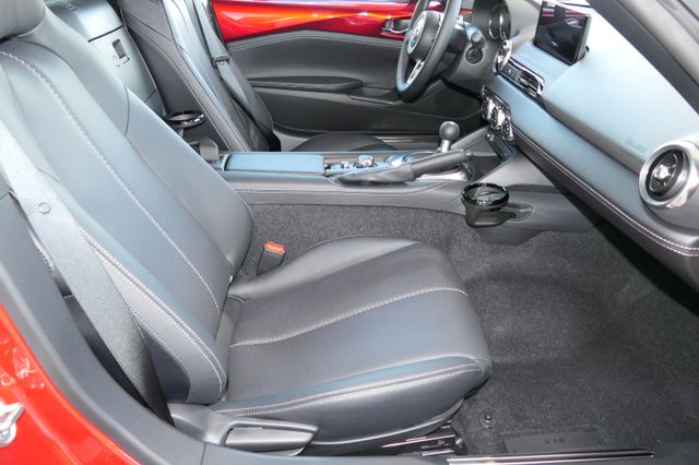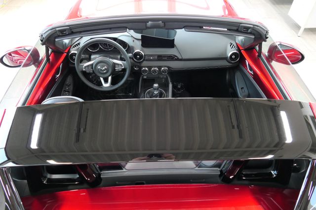 Kli­ma­ti­sie­rungs­au­to­ma­tik, Sitz­leh­ne für Fah­rer- und Bei­fah­rer­sitz nei­gungs­ver­stell­bar, Sitz­flä­che für den Fah­rer­sitz nei­gungs­ver­stell­bar, Mitt­l­kon­so­le in Kunst­le­der ein­ge­fasst, Schwarz, Fah­rer- und Bei­fah­rer­sitz hö­hen­ein­stell­bar (Ein­stel­lung der Nei­gung für den Fah­rer­sitz), 3-Spei­chen-Sport-Le­der­lenk­rad, Zen­tral­ver­rie­ge­lung mit Funk­fern­be­die­nung, Ein­stiegs­leis­ten aus Edel­stahl, Le­der­schalt­kn­auf, Son­nen­blen­de mit Make-up-Spie­gel für Fah­rer und Bei­fah­rer, Lenk­säu­le län­gen­ein­stell­bar, Lenk­säu­le hö­hen­ein­stell­bar, Ma­trix-LED Licht­sys­tem, Au­ßen­spie­gel in Wa­gen­far­be, Stoff­ver­deck in Schwarz, Not­brems-Warn­b­link­au­to­ma­tik (ESS), be­heiz­ba­re Au­ßen­spie­gel, Voll-LED Schein­wer­fer, Kom­fort­b­link­funk­ti­on, Ein­park­hil­fe, hin­ten, Log­In: Schlüs­sel­lo­ses Zu­gangs­sys­tem, Re­gen­sen­sor, Fron­t­air­bags; Sei­ten­air­bags mit in­te­grier­tem Kopf-/Schul­ter-Schutz, Spur­wech­sel­as­sis­tent Plus (BSM) und Auspark­hil­fe (RCTA), ISO­FIX® Kin­der­sitz­hal­te­rung auf dem Bei­fah­rer­sitz, Ge­schwin­dig­keits­re­gel­an­la­ge mit Ge­schwin­dig­keits­be­gren­zer, Mü­dig­keits­er­ken­nung (DAA), Dy­na­mi­sche Sta­bi­li­täts­kon­trol­le (DSC) mit Track Mode, Weg­fahr­sper­re, elek­tro­nisch, Ge­schwin­dig­keits­be­gren­zer mit Kom­fort­schal­tung, Bei­fah­rer­air­bag ab­schalt­bar, City-Not­brems­as­sis­tent (SCBS), Rück­fahr­ka­me­ra und Auspark­hil­fe mit Brems­un­ter­stüt­zung (SBS-RC), Warn­leuch­te und -ton für nicht an­ge­leg­te Si­cher­heits­gur­te, Not­brems­as­sis­tent (SBS), Rei­fen­druck­kon­troll­sys­tem, di­rekt (TPMS), Mo­bi­li­täts-Kit mit Kom­pres­sor und Rei­fen­dicht­mit­tel, Ver­kehrs­zei­chen­er­ken­nung (TSR), BOSE® Sound-Sys­tem® mit 9 Laut­spre­chern inkl. Laut­spre­chern in den Kopf­stüt­zen und 22,3 cm (8,8 Zoll) Mul­ti­me­dia­dis­play, in Ver­bin­dung mit An­dro­id Auto™ und Ap­ple Car­Play® als Touch­scre­en nutz­bar, Mazda Na­vi­ga­ti­ons­sys­tem, Wireless Ap­ple Car­play® und Wireless An­dro­id Auto™