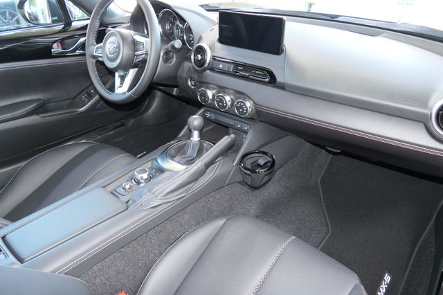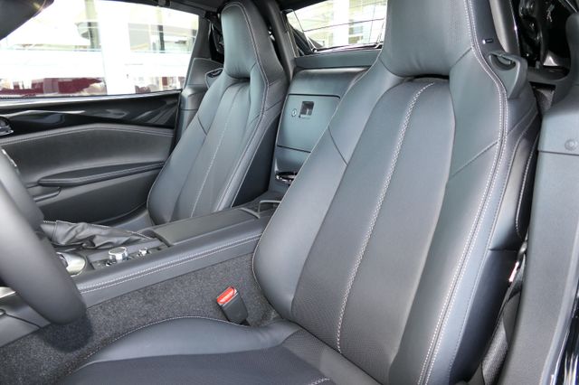 Kli­ma­ti­sie­rungs­au­to­ma­tik, Sitz­leh­ne für Fah­rer- und Bei­fah­rer­sitz nei­gungs­ver­stell­bar, Sitz­flä­che für den Fah­rer­sitz nei­gungs­ver­stell­bar, Mitt­l­kon­so­le in Kunst­le­der ein­ge­fasst, Schwarz, Fah­rer- und Bei­fah­rer­sitz hö­hen­ein­stell­bar (Ein­stel­lung der Nei­gung für den Fah­rer­sitz), 3-Spei­chen-Sport-Le­der­lenk­rad, Zen­tral­ver­rie­ge­lung mit Funk­fern­be­die­nung, Ein­stiegs­leis­ten aus Edel­stahl, Le­der­schalt­kn­auf, Son­nen­blen­de mit Make-up-Spie­gel für Fah­rer und Bei­fah­rer, Lenk­säu­le län­gen­ein­stell­bar, Lenk­säu­le hö­hen­ein­stell­bar, Ma­trix-LED Licht­sys­tem, Au­ßen­spie­gel in Wa­gen­far­be, Stoff­ver­deck in Schwarz, Not­brems-Warn­b­link­au­to­ma­tik (ESS), be­heiz­ba­re Au­ßen­spie­gel, Voll-LED Schein­wer­fer, Kom­fort­b­link­funk­ti­on, Ein­park­hil­fe, hin­ten, Log­In: Schlüs­sel­lo­ses Zu­gangs­sys­tem, Re­gen­sen­sor, Fron­t­air­bags; Sei­ten­air­bags mit in­te­grier­tem Kopf-/Schul­ter-Schutz, Spur­wech­sel­as­sis­tent Plus (BSM) und Auspark­hil­fe (RCTA), ISO­FIX® Kin­der­sitz­hal­te­rung auf dem Bei­fah­rer­sitz, Ge­schwin­dig­keits­re­gel­an­la­ge mit Ge­schwin­dig­keits­be­gren­zer, Mü­dig­keits­er­ken­nung (DAA), Dy­na­mi­sche Sta­bi­li­täts­kon­trol­le (DSC) mit Track Mode, Weg­fahr­sper­re, elek­tro­nisch, Ge­schwin­dig­keits­be­gren­zer mit Kom­fort­schal­tung, Bei­fah­rer­air­bag ab­schalt­bar, City-Not­brems­as­sis­tent (SCBS), Rück­fahr­ka­me­ra und Auspark­hil­fe mit Brems­un­ter­stüt­zung (SBS-RC), Warn­leuch­te und -ton für nicht an­ge­leg­te Si­cher­heits­gur­te, Not­brems­as­sis­tent (SBS), Rei­fen­druck­kon­troll­sys­tem, di­rekt (TPMS), Mo­bi­li­täts-Kit mit Kom­pres­sor und Rei­fen­dicht­mit­tel, Ver­kehrs­zei­chen­er­ken­nung (TSR), BOSE® Sound-Sys­tem® mit 9 Laut­spre­chern inkl. Laut­spre­chern in den Kopf­stüt­zen und 22,3 cm (8,8 Zoll) Mul­ti­me­dia­dis­play, in Ver­bin­dung mit An­dro­id Auto™ und Ap­ple Car­Play® als Touch­scre­en nutz­bar, Mazda Na­vi­ga­ti­ons­sys­tem, Wireless Ap­ple Car­play® und Wireless An­dro­id Auto™