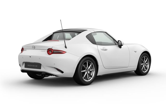 Klimatisierungsautomatik, Sitzlehne für Fahrer- und Beifahrersitz neigungsverstellbar, Sitzfläche für den Fahrersitz neigungsverstellbar, Mittlkonsole in Kunstleder eingefasst, Schwarz, Fahrer- und Beifahrersitz höheneinstellbar (Einstellung der Neigung für den Fahrersitz), 3-Speichen-Sport-Lederlenkrad, Zentralverriegelung mit Funkfernbedienung, Einstiegsleisten aus Edelstahl, Lederschaltknauf, Sonnenblende mit Make-up-Spiegel für Fahrer und Beifahrer, Lenksäule längeneinstellbar, Lenksäule höheneinstellbar, Matrix-LED Lichtsystem, Außenspiegel in Wagenfarbe, Stoffverdeck in Schwarz, Notbrems-Warnblinkautomatik (ESS), beheizbare Außenspiegel, Voll-LED Scheinwerfer, Komfortblinkfunktion, Einparkhilfe, hinten, LogIn: Schlüsselloses Zugangssystem, Regensensor, Frontairbags; Seitenairbags mit integriertem Kopf-/Schulter-Schutz, Spurwechselassistent Plus (BSM) und Ausparkhilfe (RCTA), ISOFIX® Kindersitzhalterung auf dem Beifahrersitz, Geschwindigkeitsregelanlage mit Geschwindigkeitsbegrenzer, Müdigkeitserkennung (DAA), Dynamische Stabilitätskontrolle (DSC) mit Track Mode, Wegfahrsperre, elektronisch, Geschwindigkeitsbegrenzer mit Komfortschaltung, Beifahrerairbag abschaltbar, City-Notbremsassistent (SCBS), Rückfahrkamera und Ausparkhilfe mit Bremsunterstützung (SBS-RC), Warnleuchte und -ton für nicht angelegte Sicherheitsgurte, Notbremsassistent (SBS), Reifendruckkontrollsystem, direkt (TPMS), Mobilitäts-Kit mit Kompressor und Reifendichtmittel, Verkehrszeichenerkennung (TSR), BOSE® Sound-System® mit 9 Lautsprechern inkl. Lautsprechern in den Kopfstützen und 22,3 cm (8,8 Zoll) Multimediadisplay, in Verbindung mit Android Auto™ und Apple CarPlay® als Touchscreen nutzbar, Mazda Navigationssystem, Wireless Apple Carplay® und Wireless Android Auto™