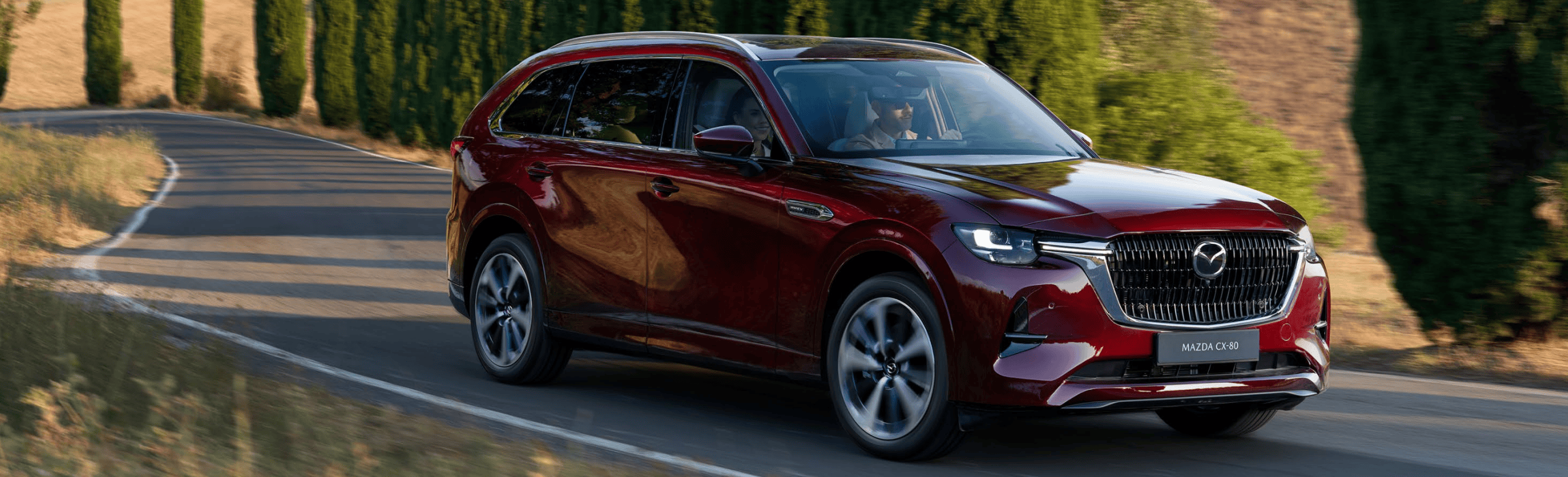 Alle diese Versionen des CX-80 sind standardmäßig mit sieben Sitzen ausgestattet, wobei die zweite Reihe drei Sitze umfasst.